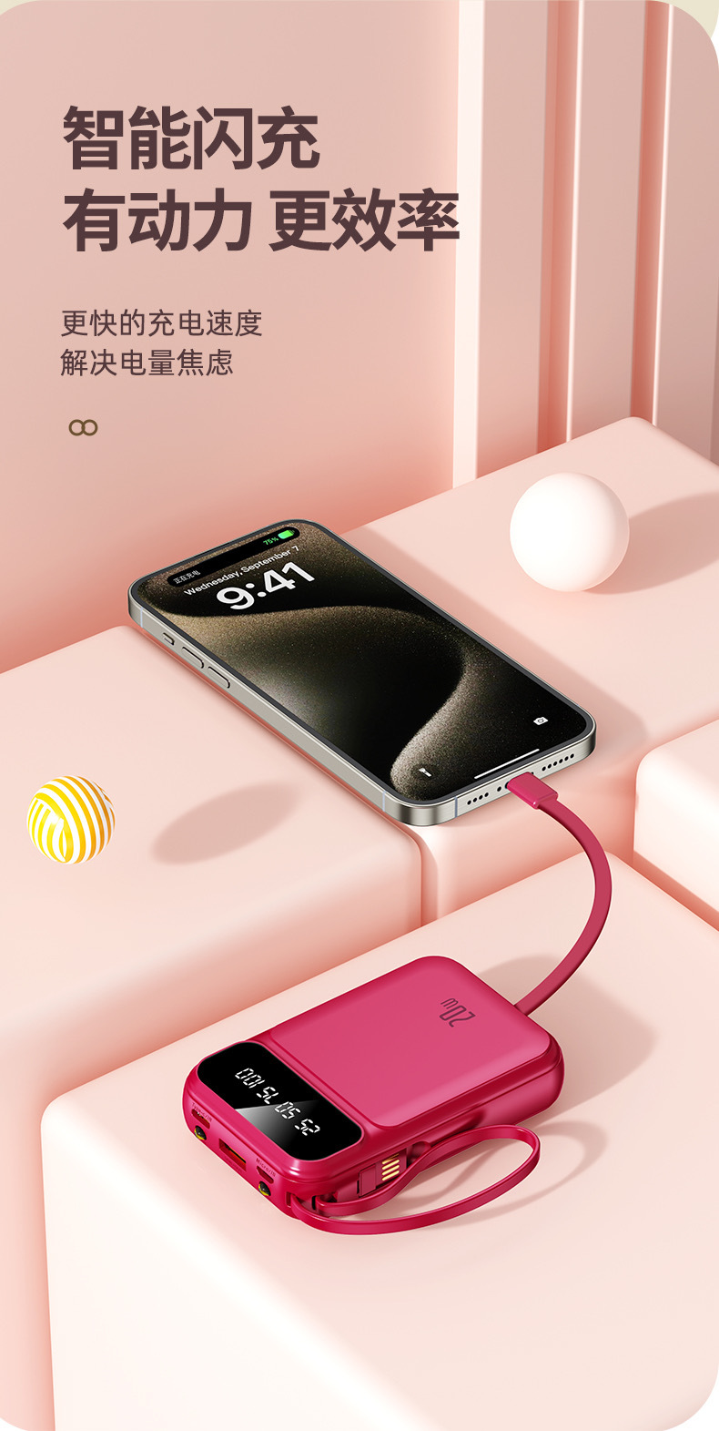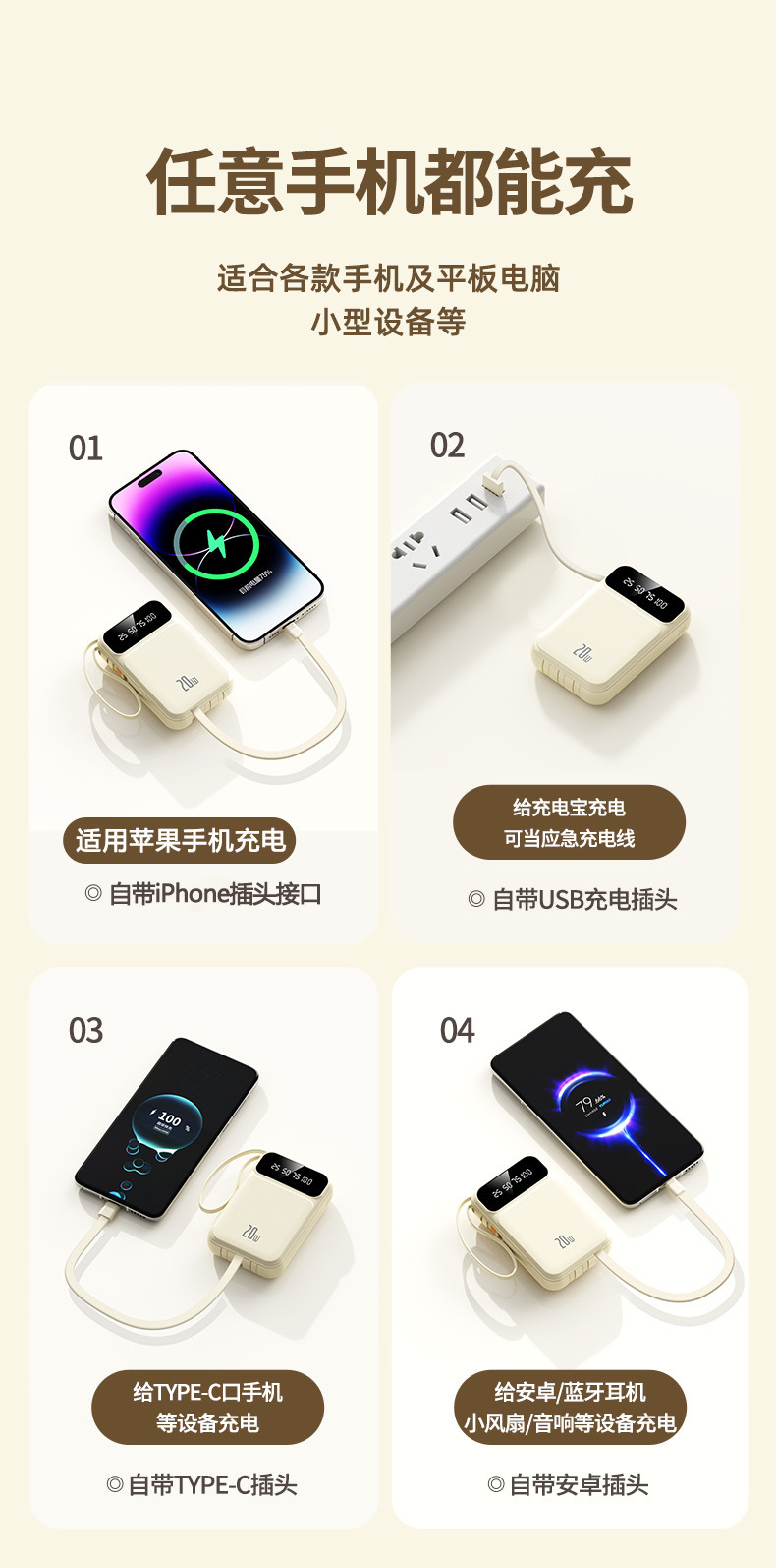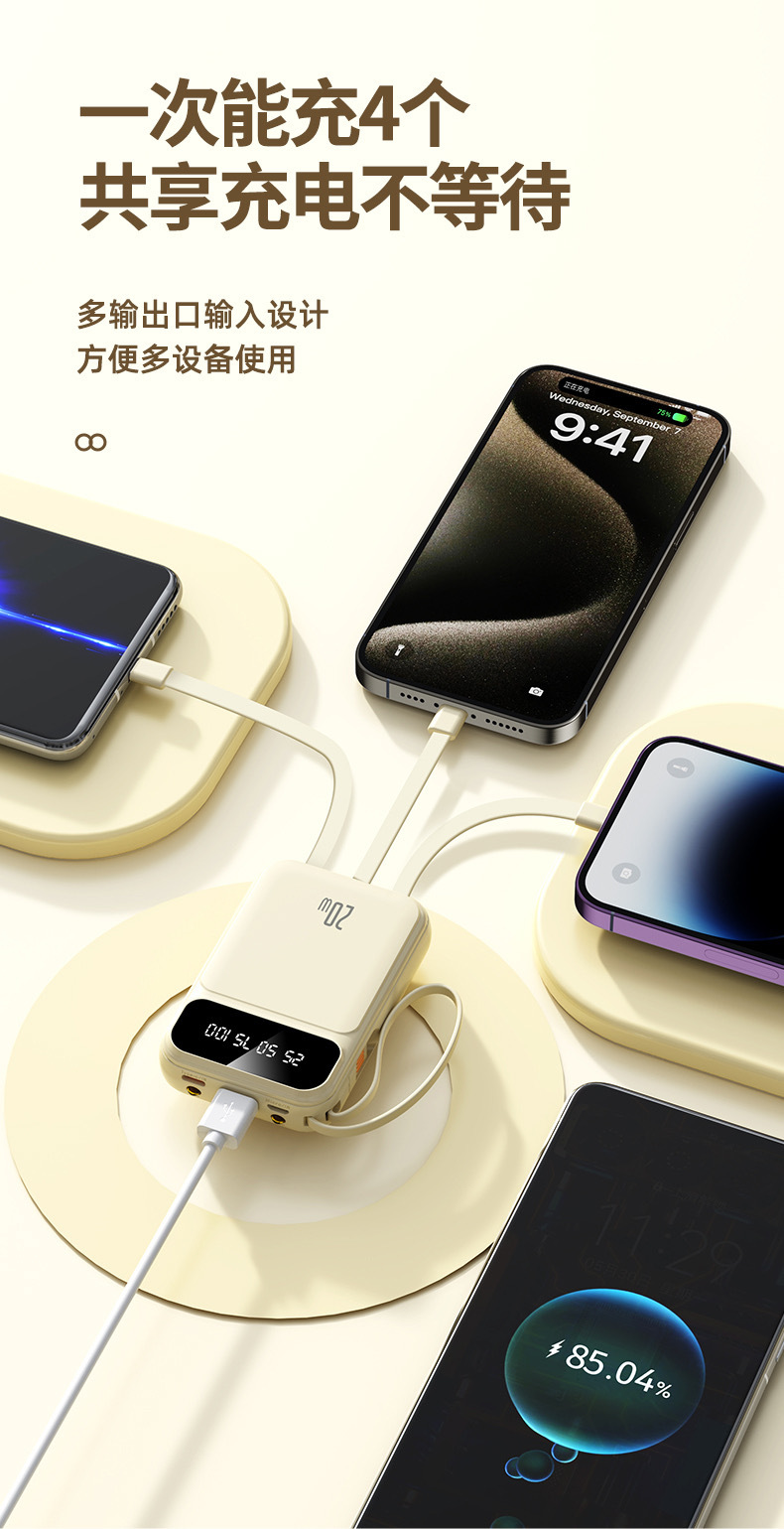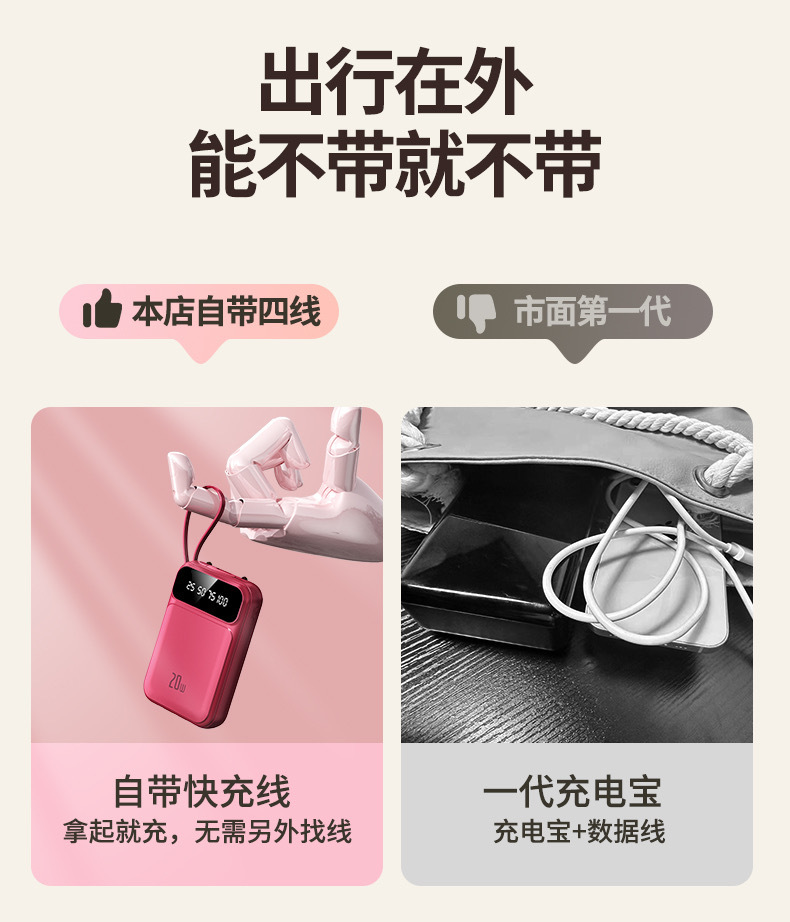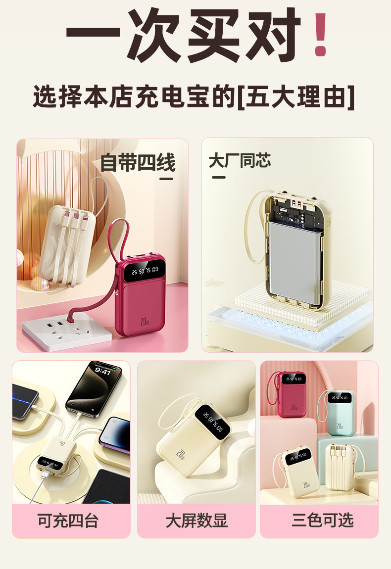2025 정품 미니 셀프 벨트 충전 보물 20000 mA 초대형 용량 초박형 소형 휴대용 모바일스토어 가기