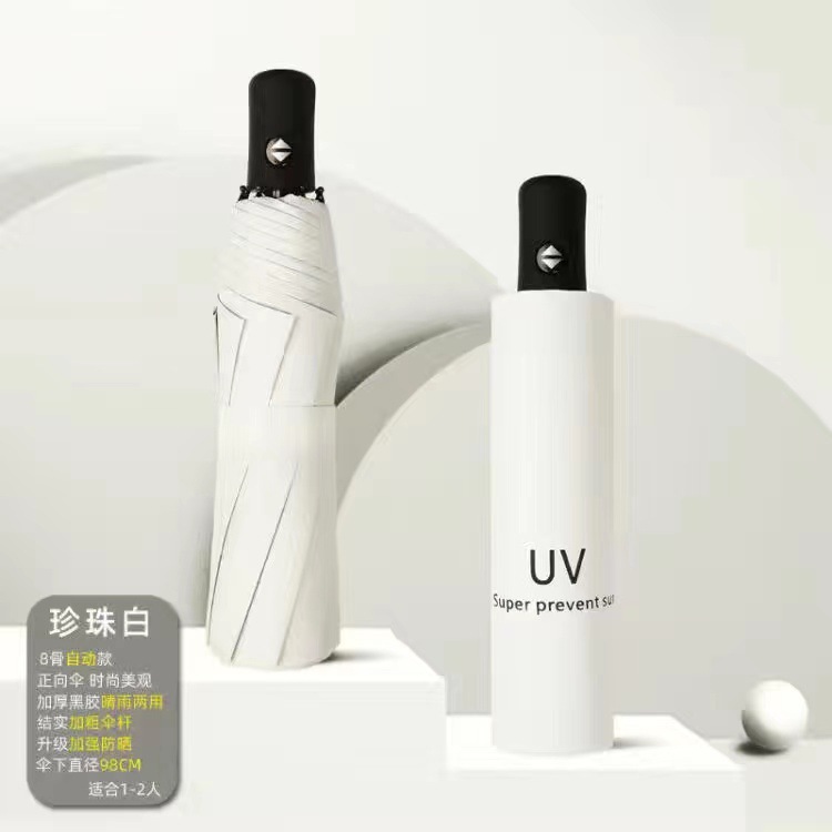 • 8본 자동 비닐 자외선 차단제 70% off 우산 - 인쇄 가능한 광고 우산 - 작고 신선한 황백색