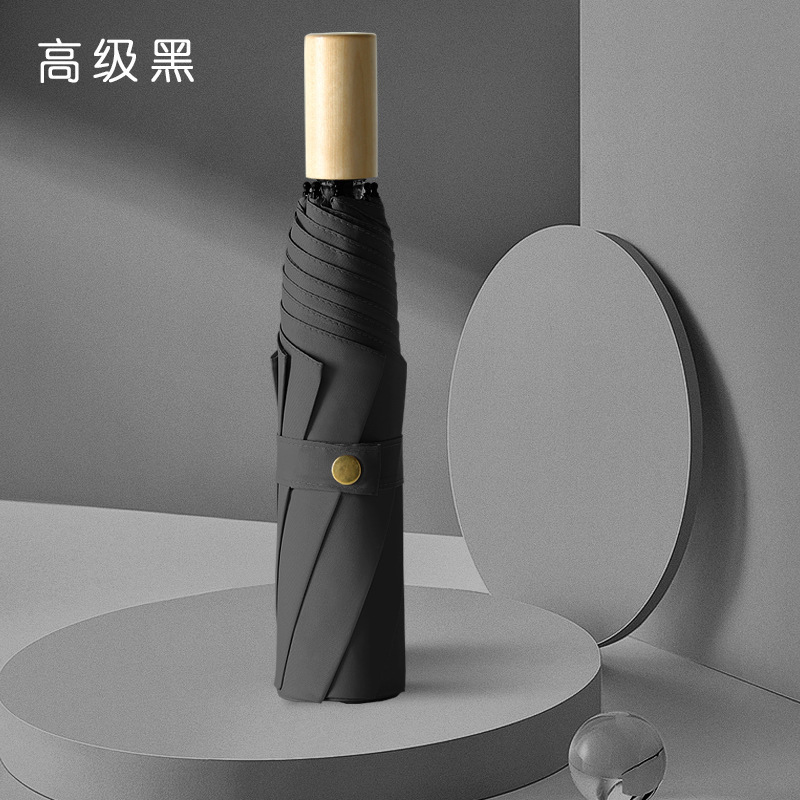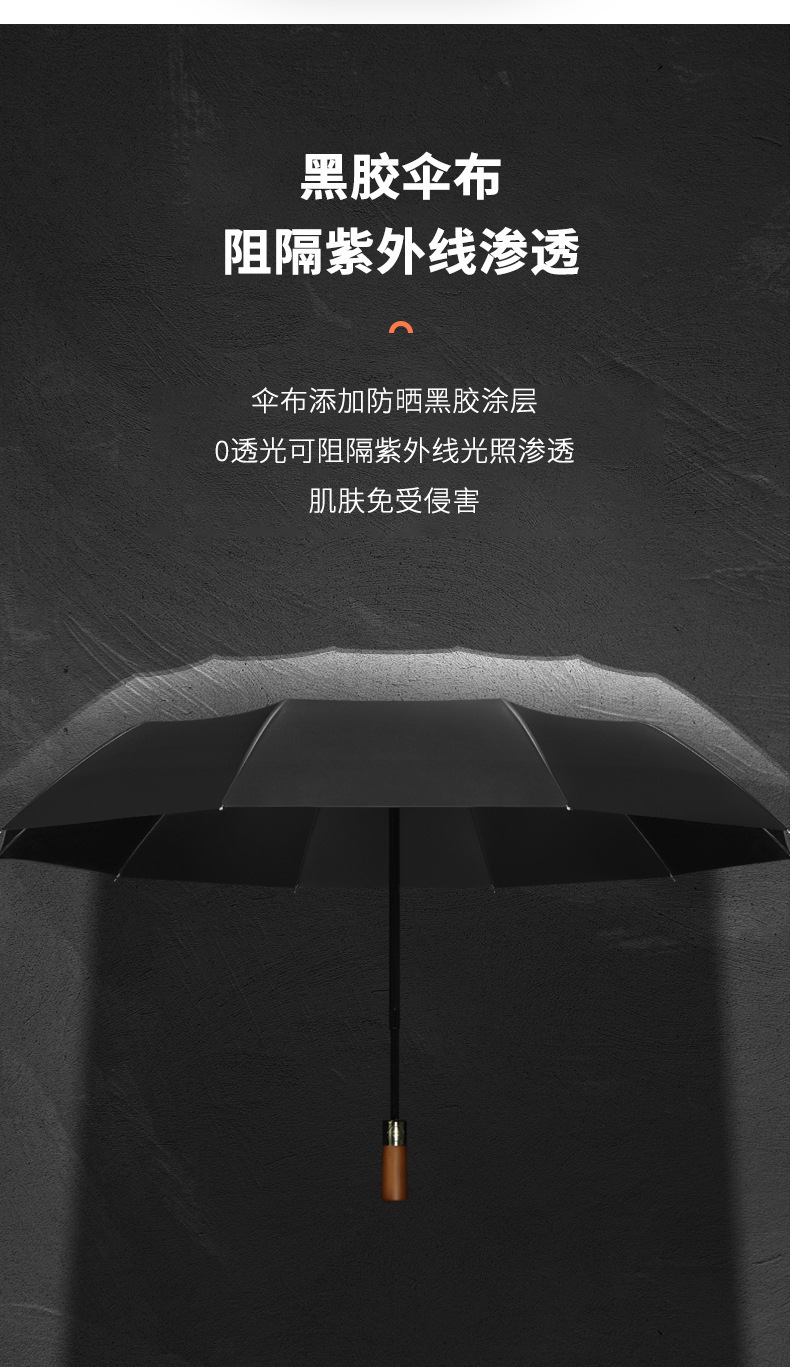 • 10본 자동 나무 손잡이 비닐 자외선 차단제 70% off 우산 - 인쇄 가능한 광고 우산 - 비즈니스 블랙