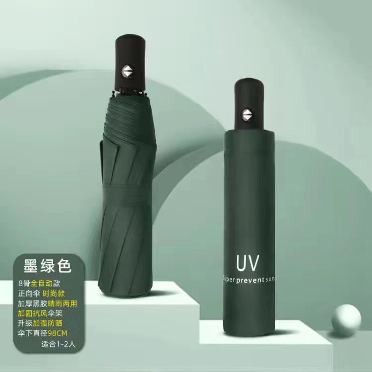 • 8본 자동 비닐 자외선 차단제 70% off 우산 - 인쇄 가능한 광고 우산 - 포레스트 그린