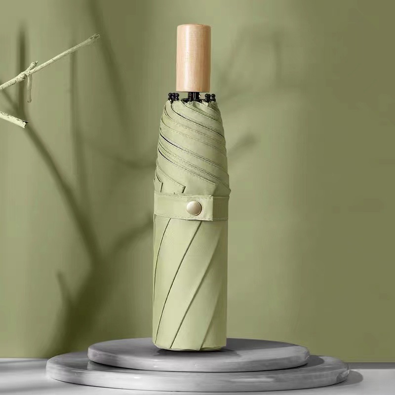 • 8본 수동 나무 손잡이 비닐 자외선 차단제 70% off 우산 - 인쇄 가능한 광고 우산 - 말차 녹색