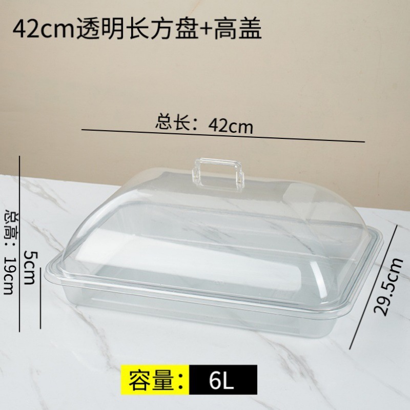 • 높은 뚜껑이 있는 투명한 42cm 직사각형 접시