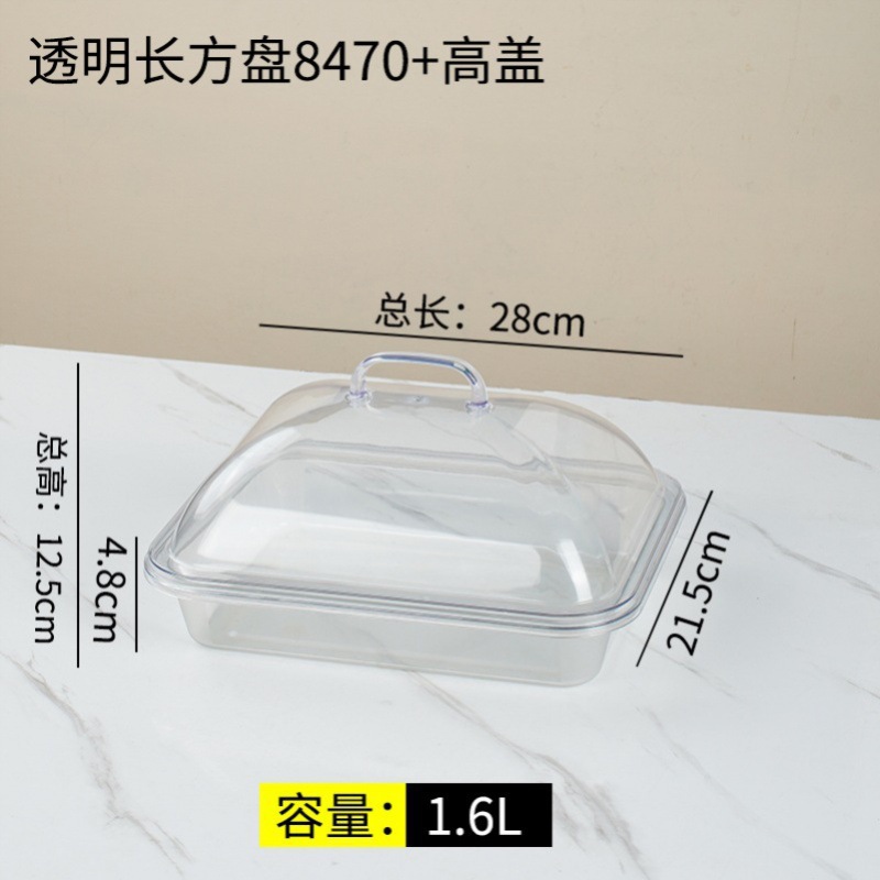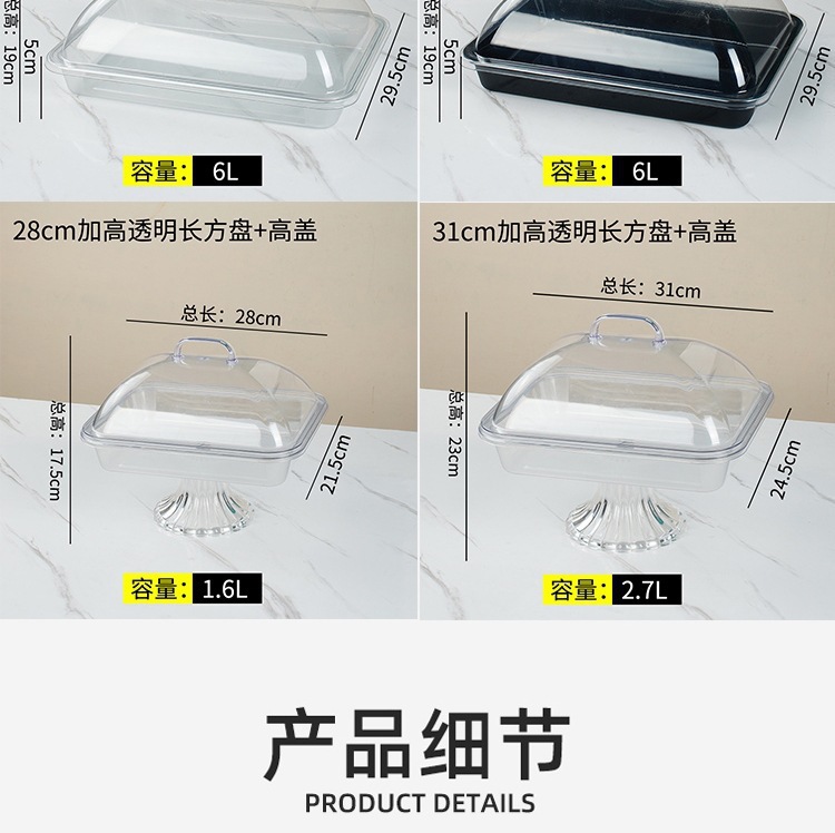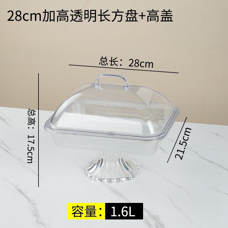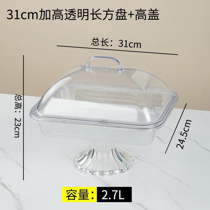 • 발과 높은 뚜껑이 있는 투명한 27cm 직사각형 플레이트