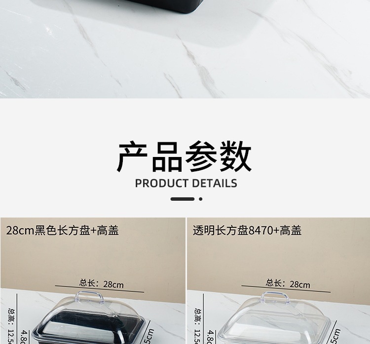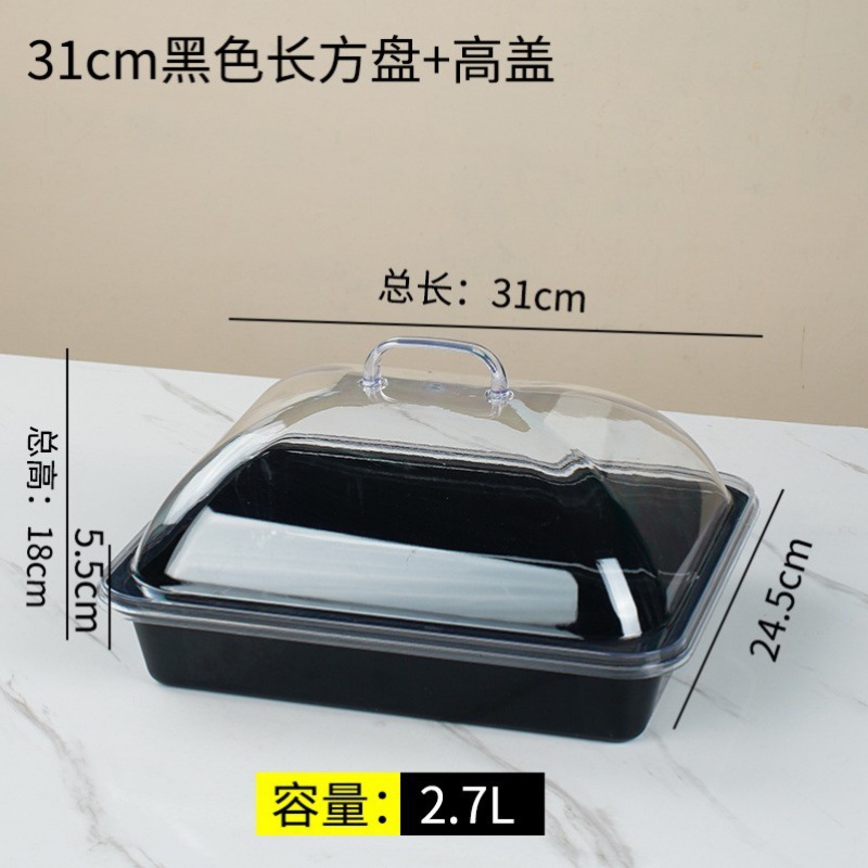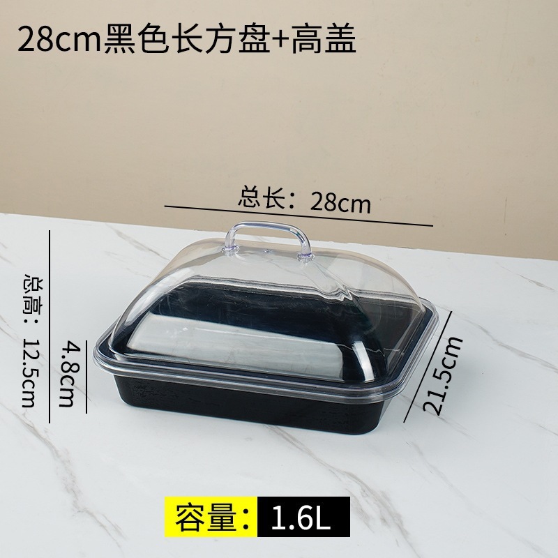 • 높은 뚜껑이 있는 검정색 27cm 직사각형 접시