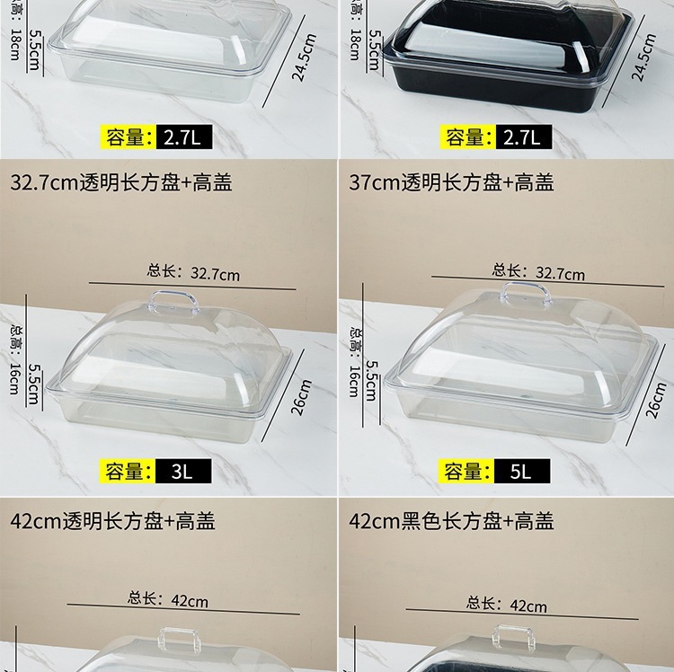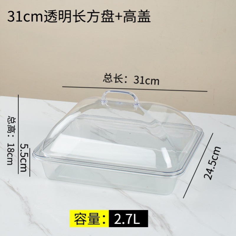 • 높은 뚜껑이 있는 투명한 27cm 직사각형 접시