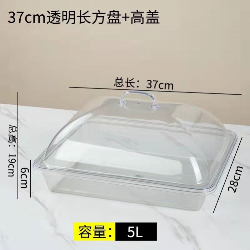 • 높은 뚜껑이 있는 투명한 36cm 직사각형 접시