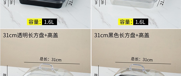 • 높은 뚜껑이 있는 투명한 32cm 직사각형 접시
