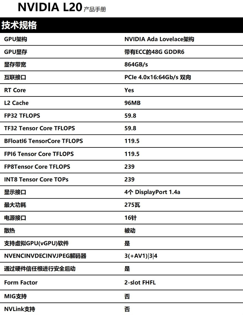 Avida Tesla 시리즈 L 20 275W 딥 계산 가속 추론 교육 전문 디스플레이에 적용 가능