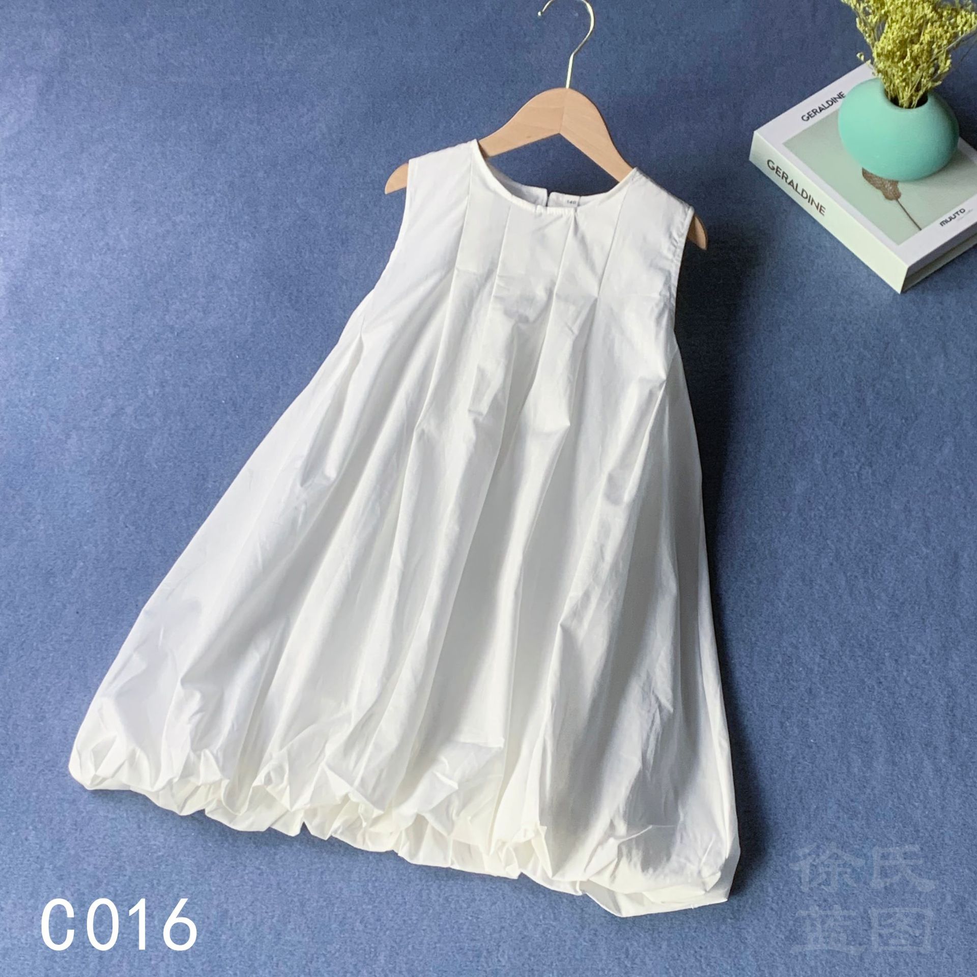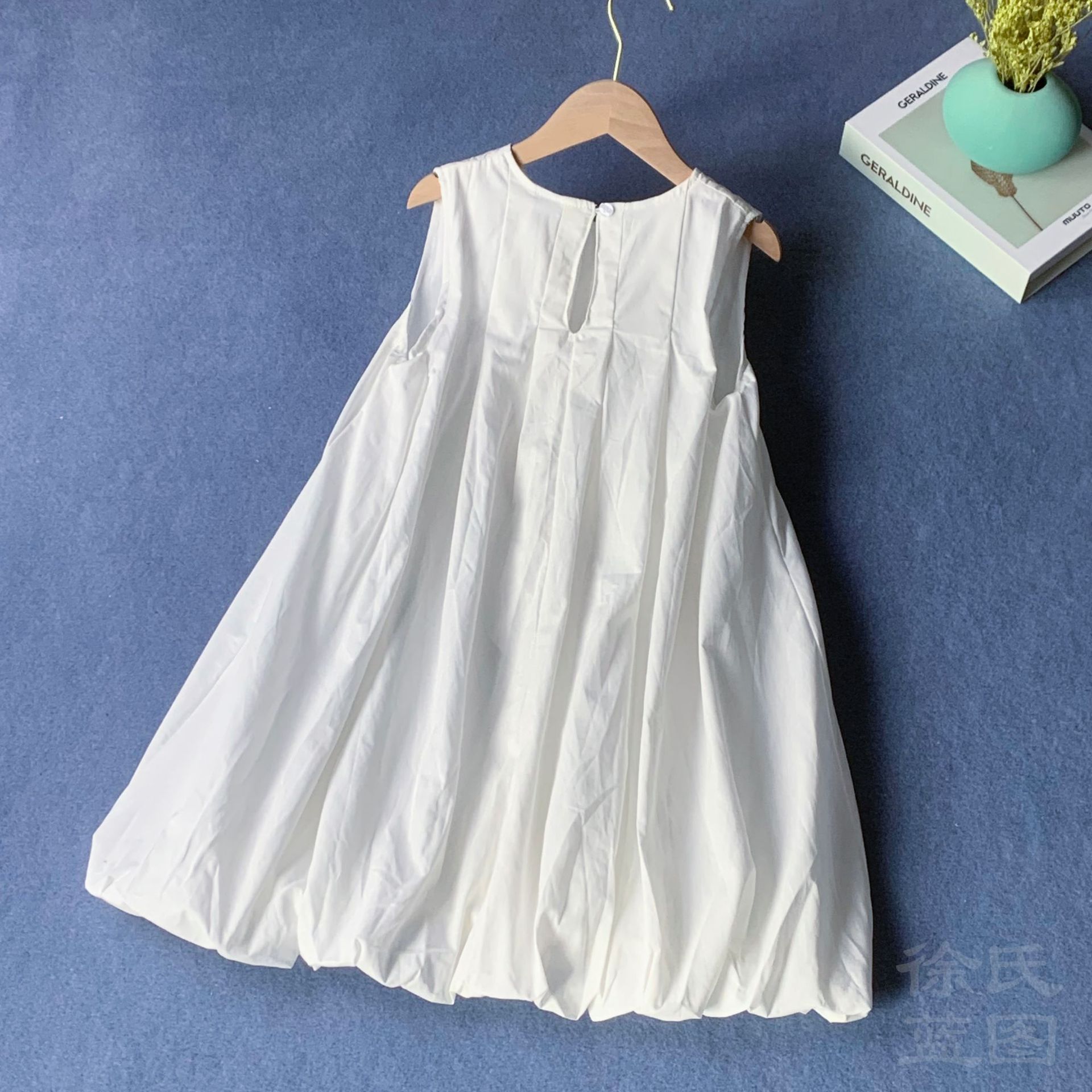 넥타이 염료 화이트 빌렛 소녀의 화이트 원피스 어린이 여름 원피스 솔리드 컬러 빅 스커트 크루 넥 어린이 스커트 A-라인 스커트