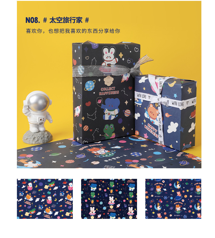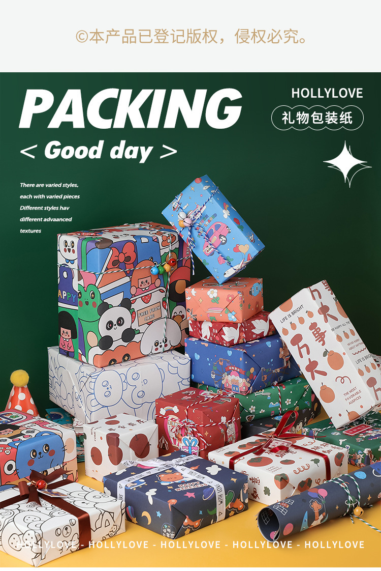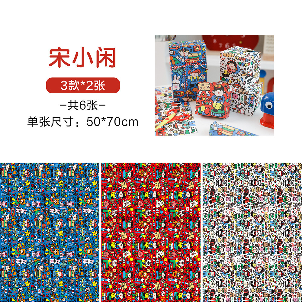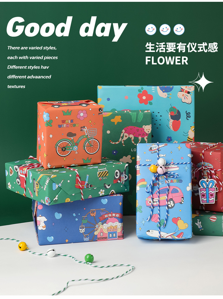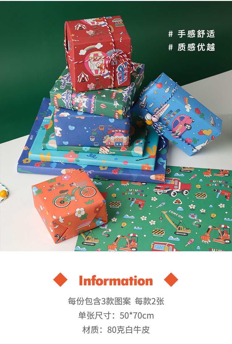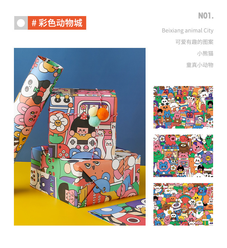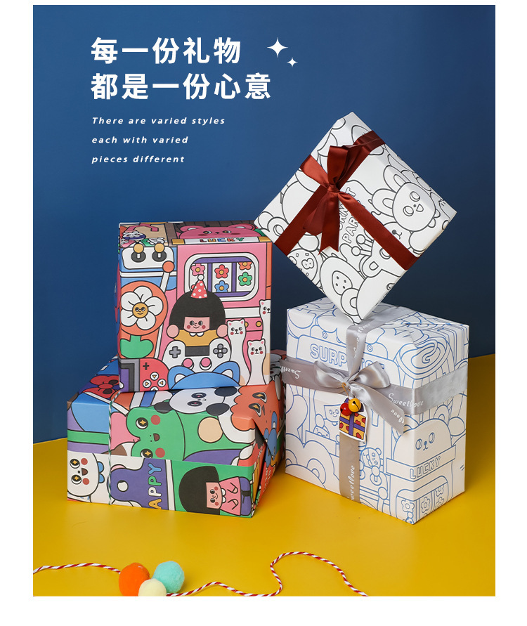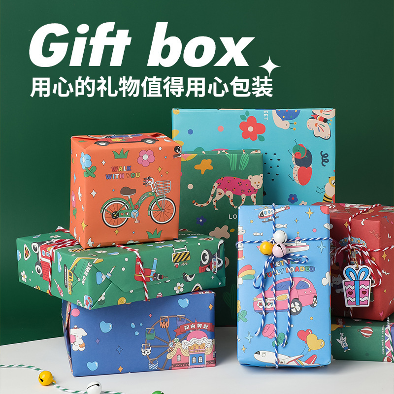 포장 종이 선물 어린이 생일 선물 종이 크래프트 종이 초등학교 어린이 유치원 귀여운 만화 컬러 종이 고급 감각