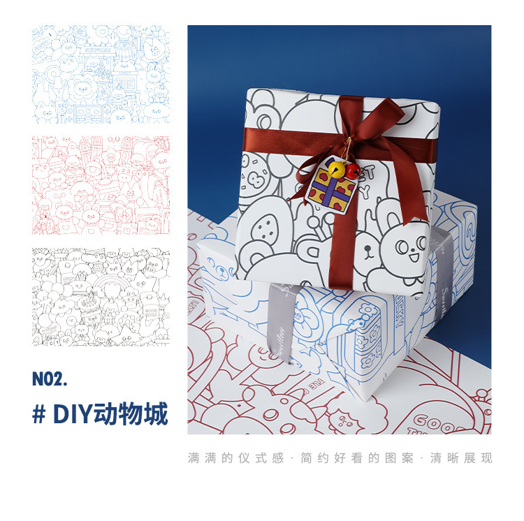 포장 종이 선물 어린이 생일 선물 종이 크래프트 종이 초등학교 어린이 유치원 귀여운 만화 컬러 종이 고급 감각스토어 가기