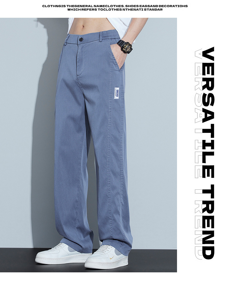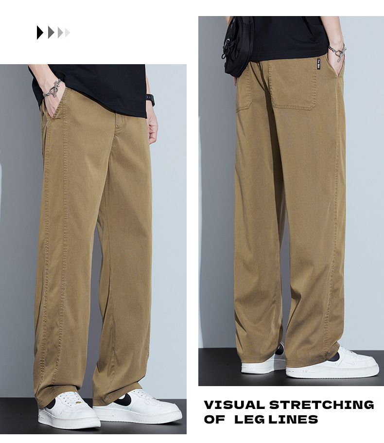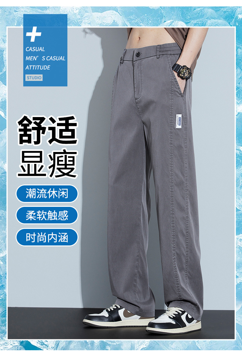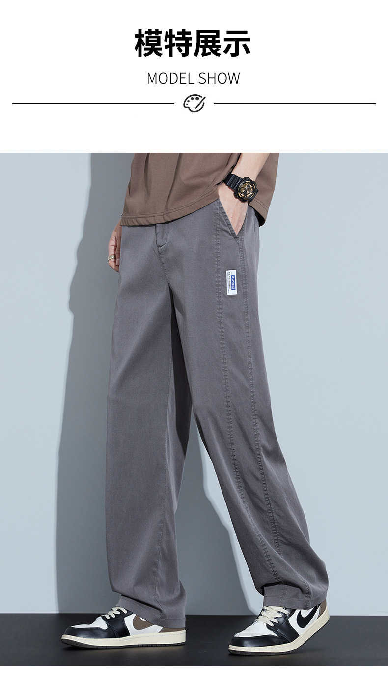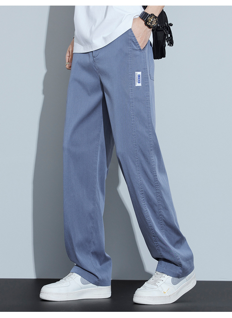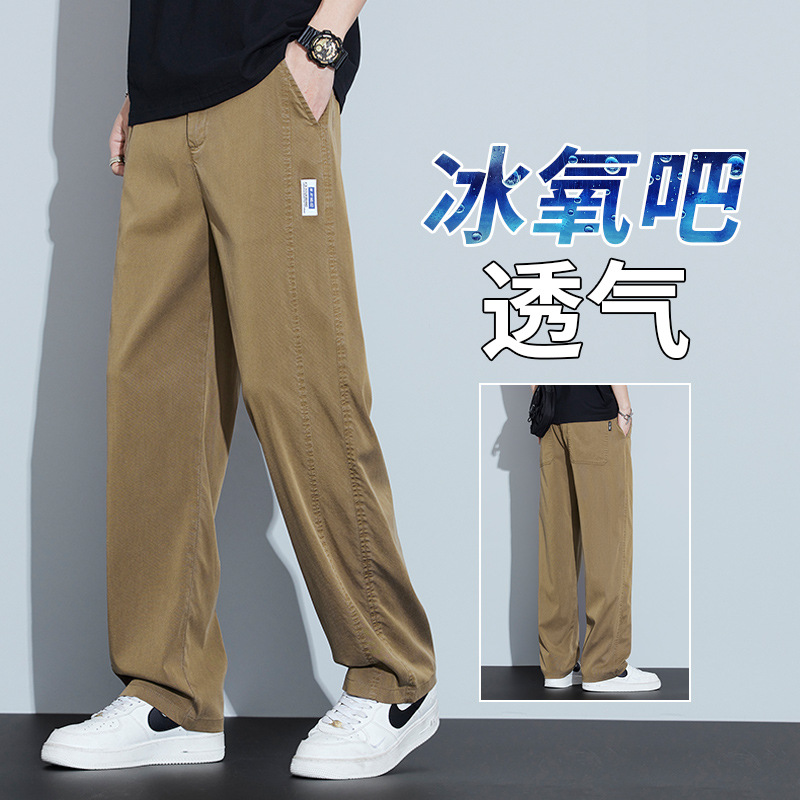 2025 봄과 여름 새로운 아이스 실크 에어컨 바지 느슨한 스트레이트 경량 통기성 트렌디 울트라 얇은 남성용 캐주얼 바지