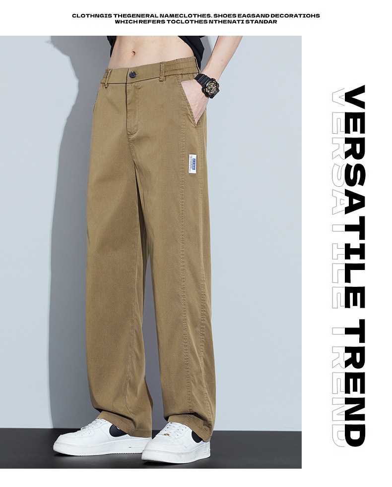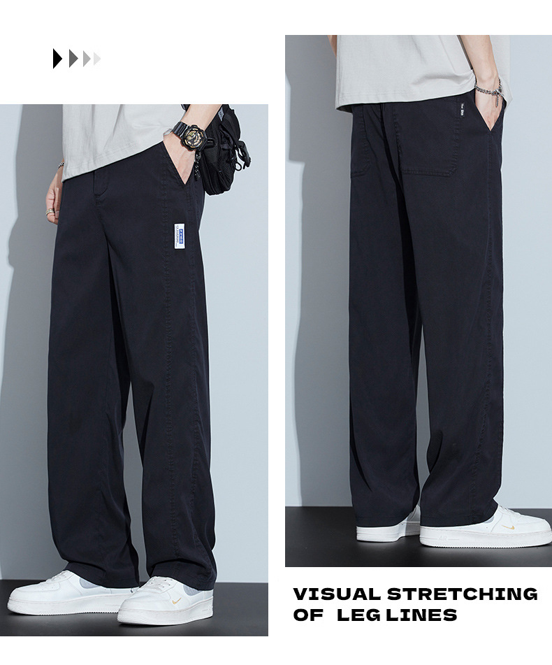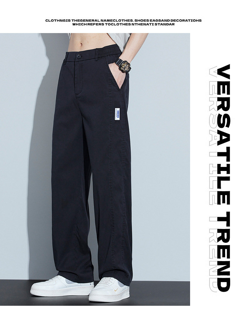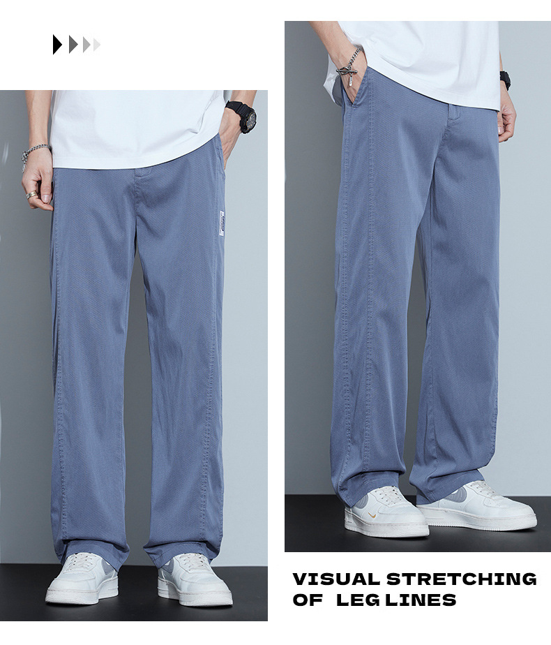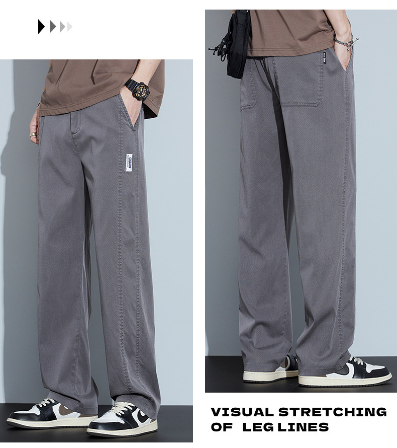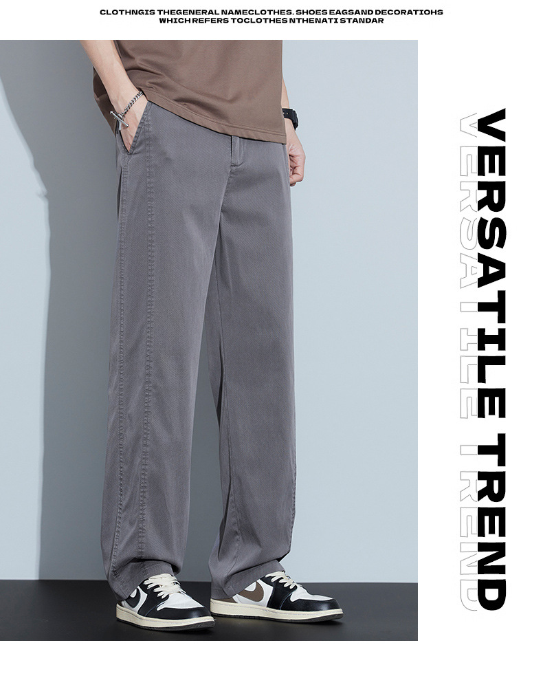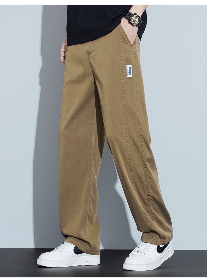 2025 봄과 여름 새로운 아이스 실크 에어컨 바지 느슨한 스트레이트 경량 통기성 트렌디 울트라 얇은 남성용 캐주얼 바지