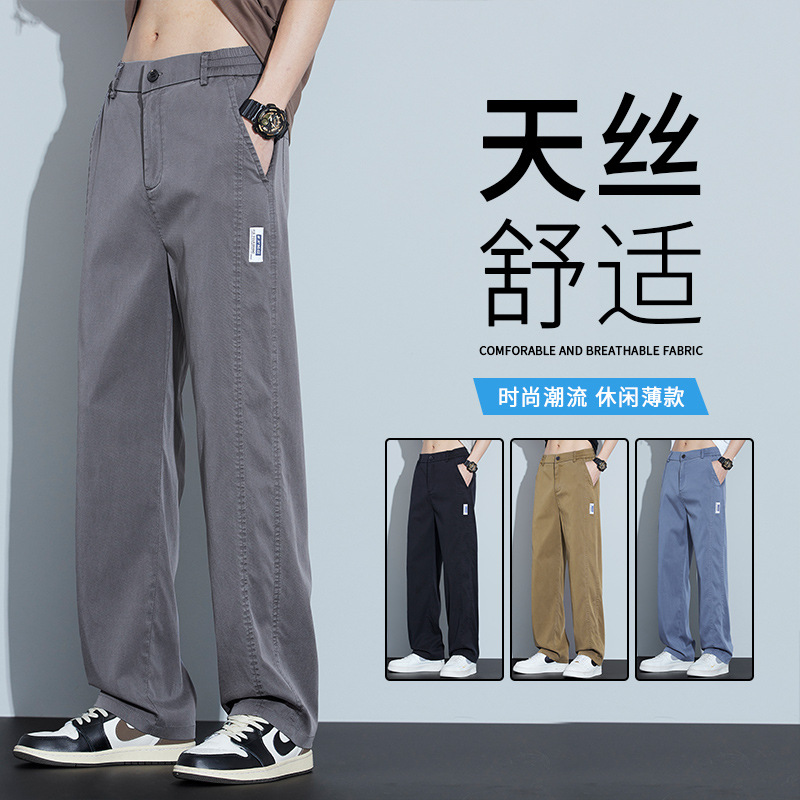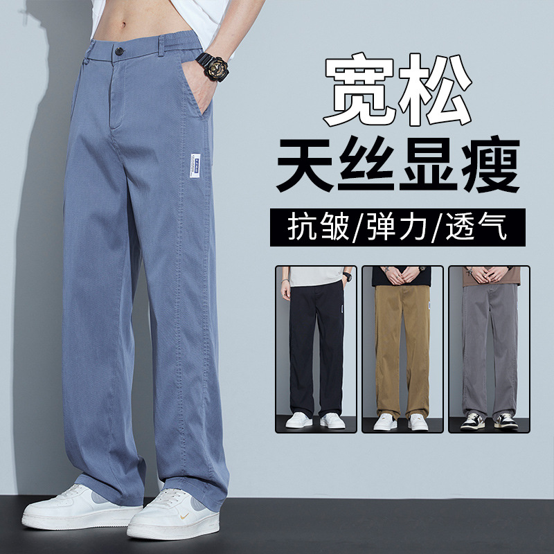 2025 봄과 여름 새로운 아이스 실크 에어컨 바지 느슨한 스트레이트 경량 통기성 트렌디 울트라 얇은 남성용 캐주얼 바지스토어 가기