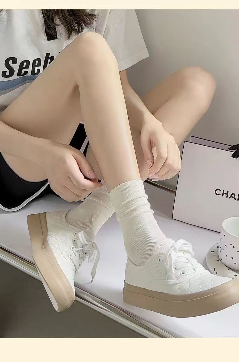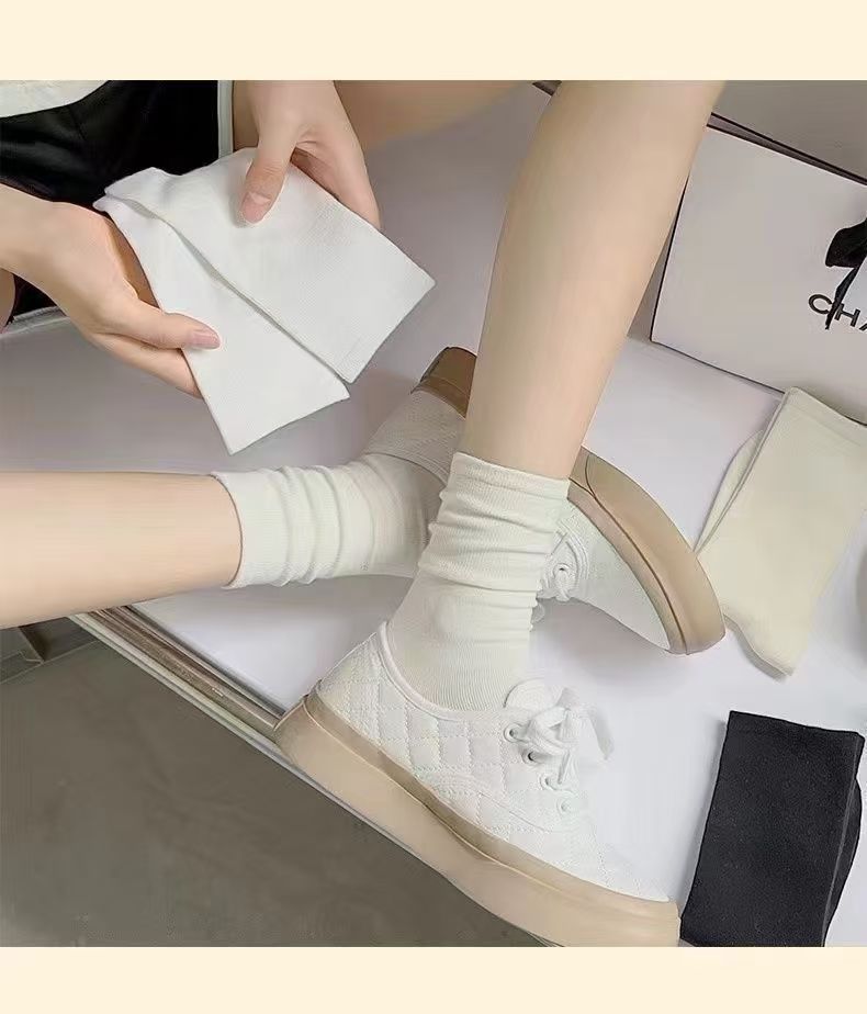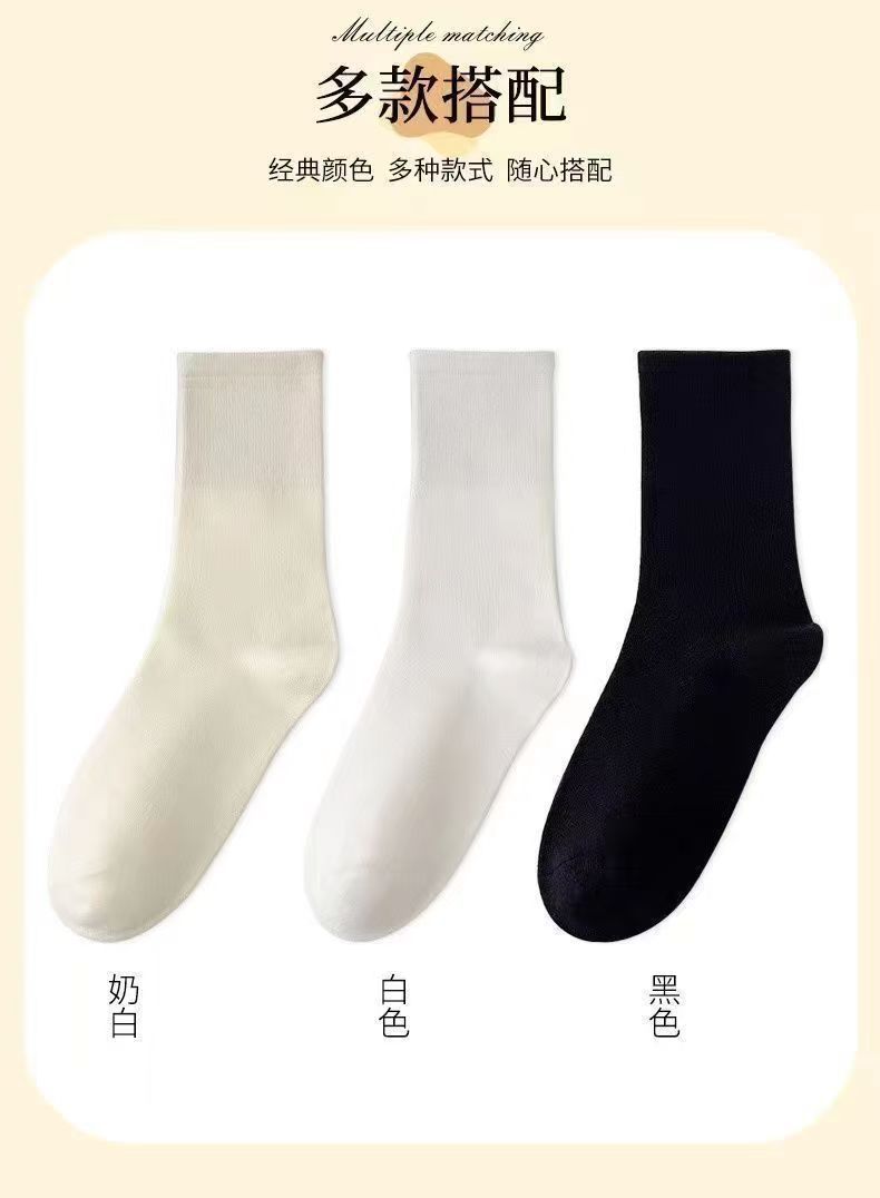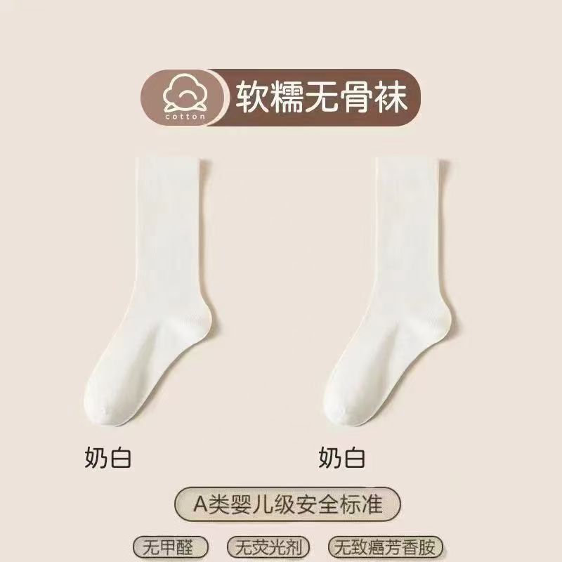 항균 무봉제 산후 양말, 봄 가을용 두꺼운 중목 양말, 흰색 양말, 학생용 롱 양말, 남녀 공용 양말스토어 가기