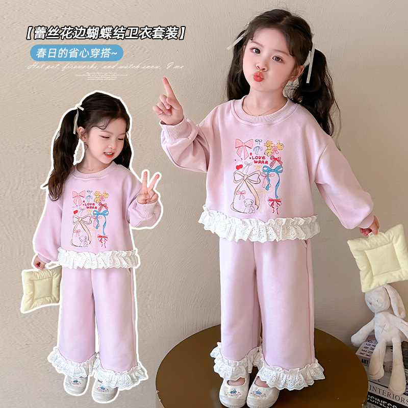 소녀 세트 봄 2025 새로운 외국 스타일의 어린이 만화 인쇄 스웨터 아기 캐주얼 바지 투피스 봄스토어 가기