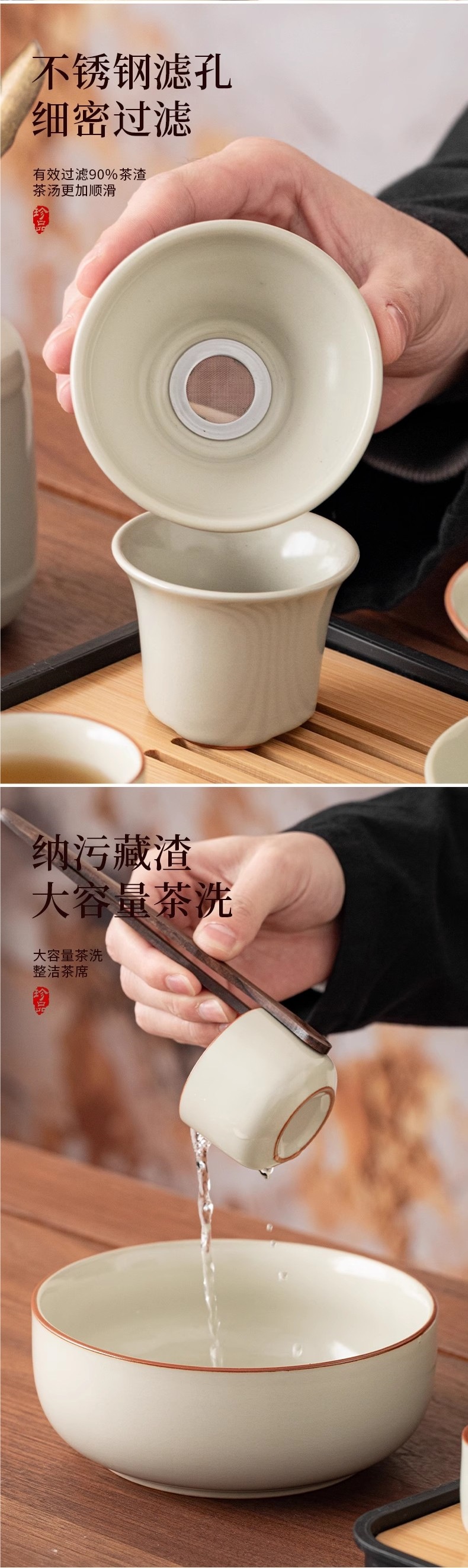 • LX-15 베이지색 Ru 가마 주전자 + 차 트레이