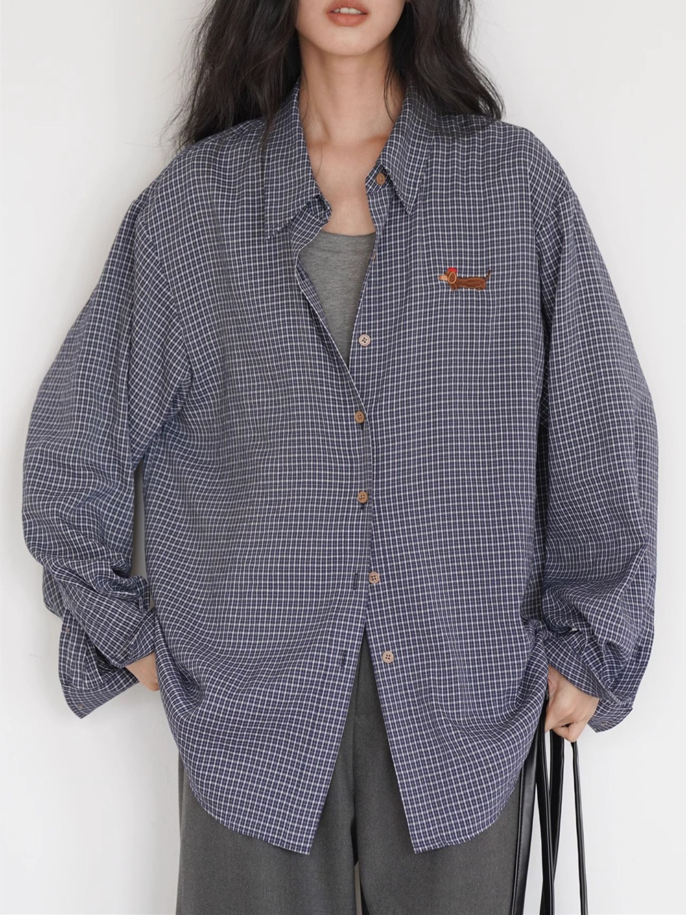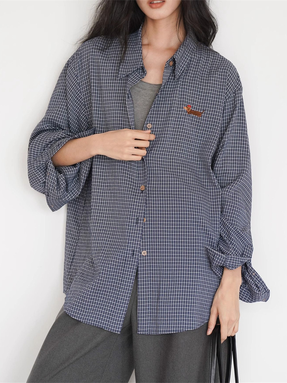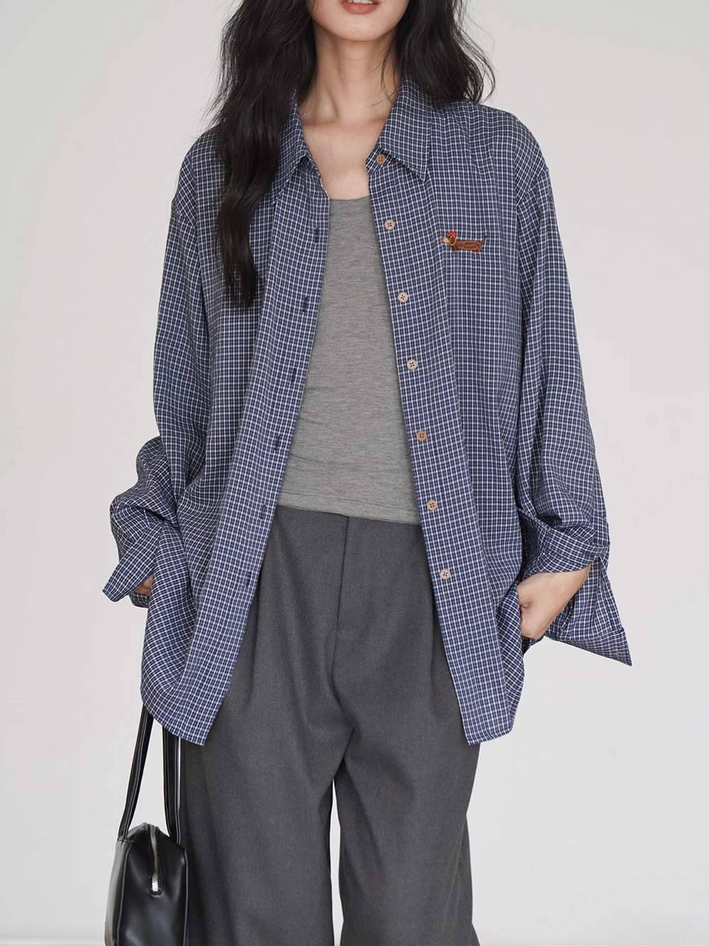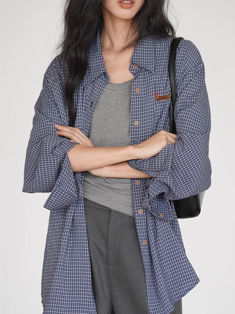 한국 스타일 느슨한 격자 무늬 셔츠 코트 여성 최고 초봄 및 가을 새로운 올매치 레트로 게으른 캐주얼 셔츠 긴 소매