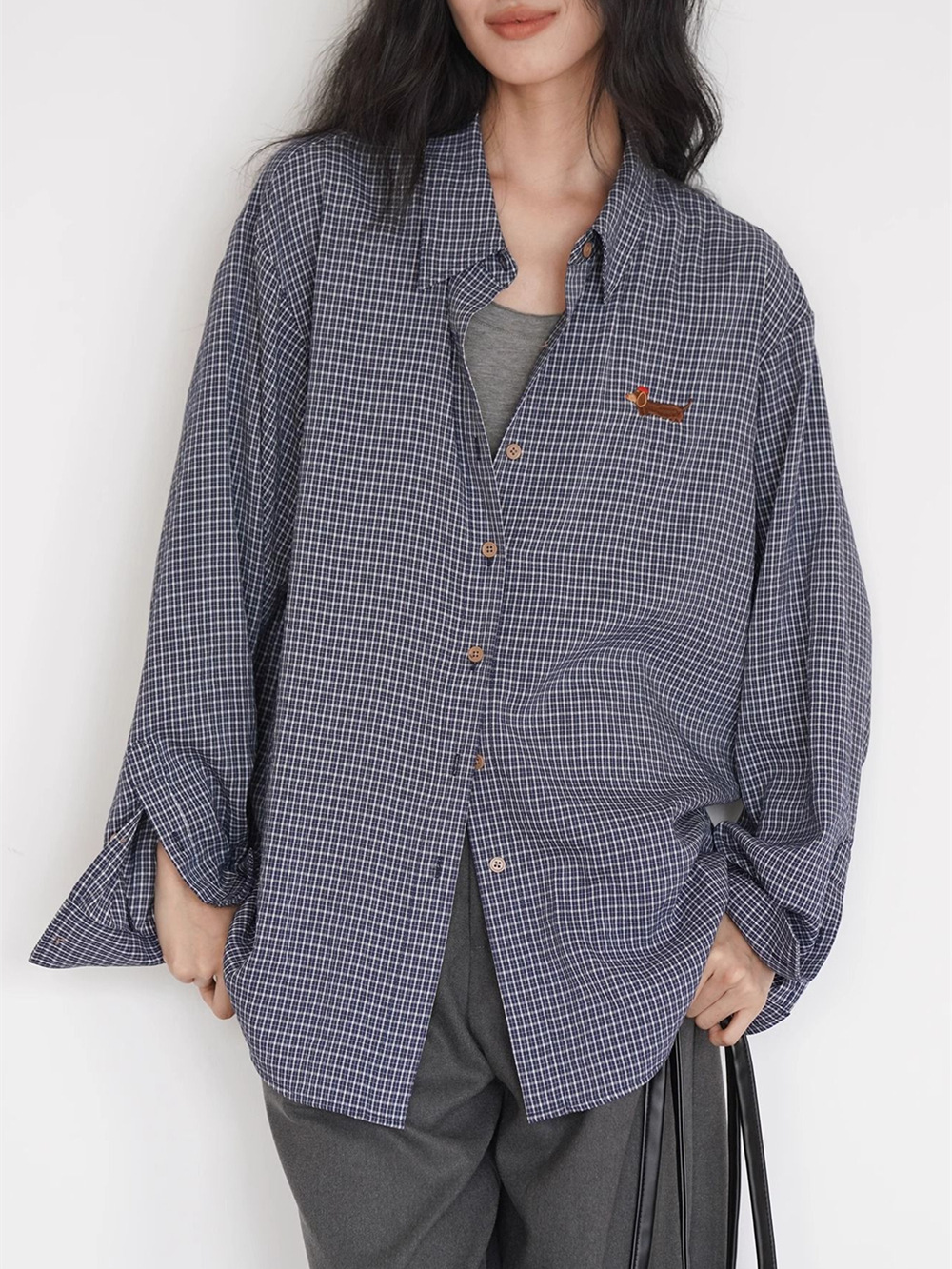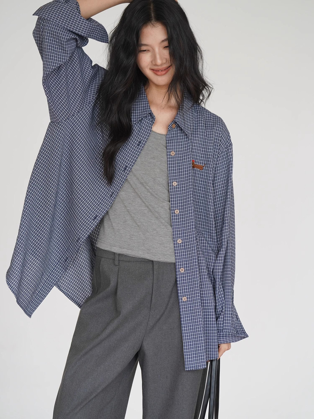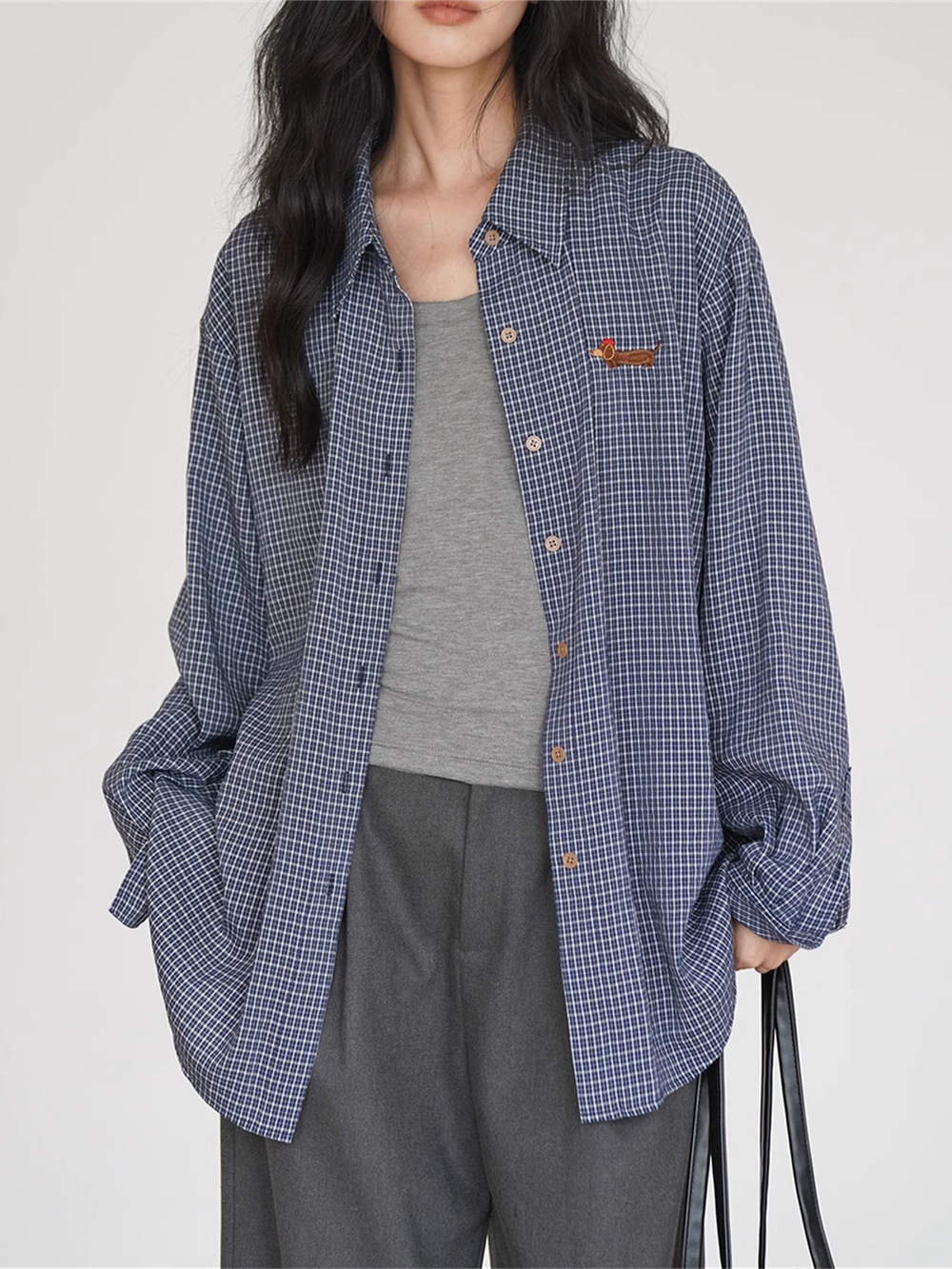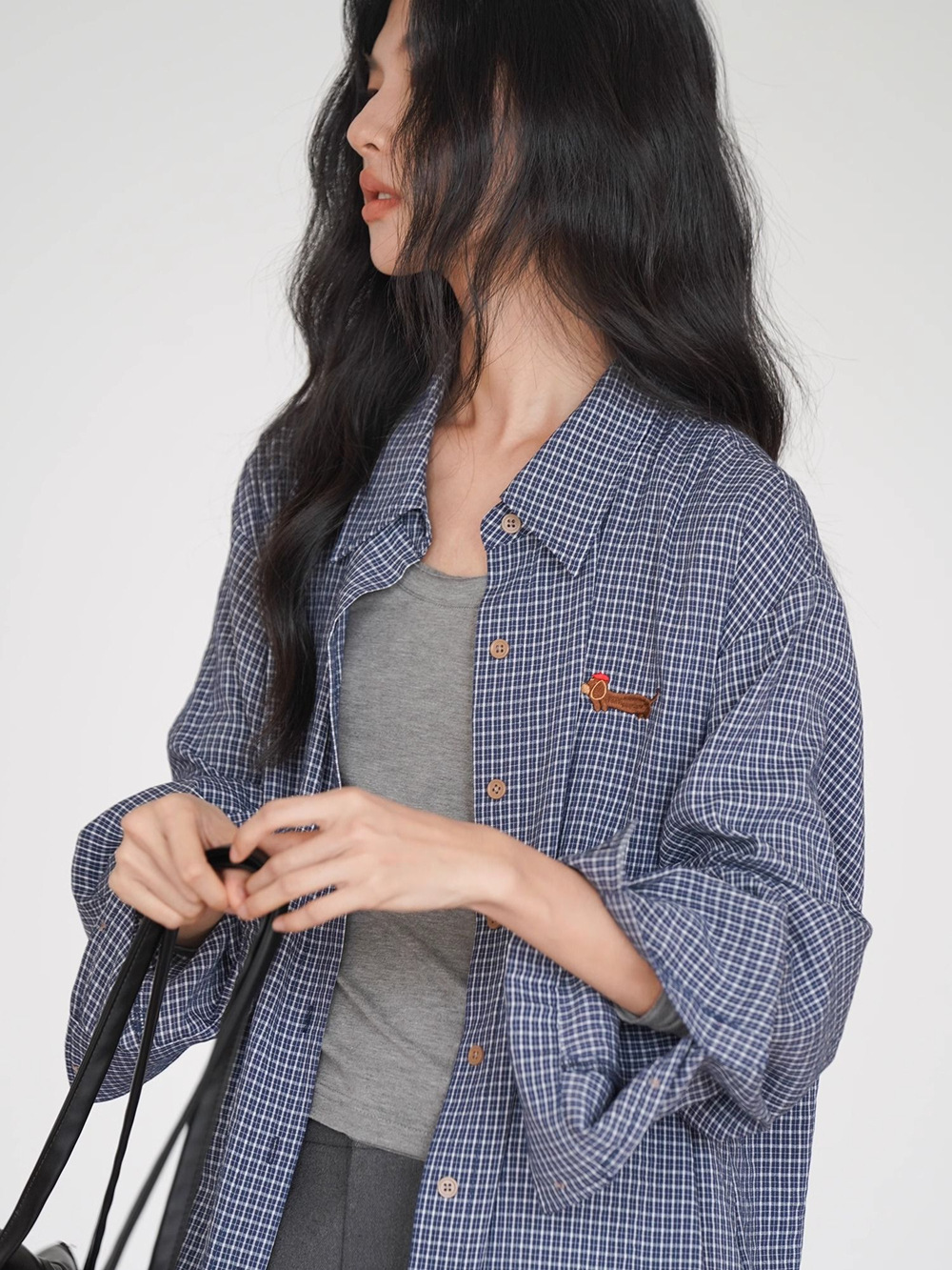 한국 스타일 느슨한 격자 무늬 셔츠 코트 여성 최고 초봄 및 가을 새로운 올매치 레트로 게으른 캐주얼 셔츠 긴 소매