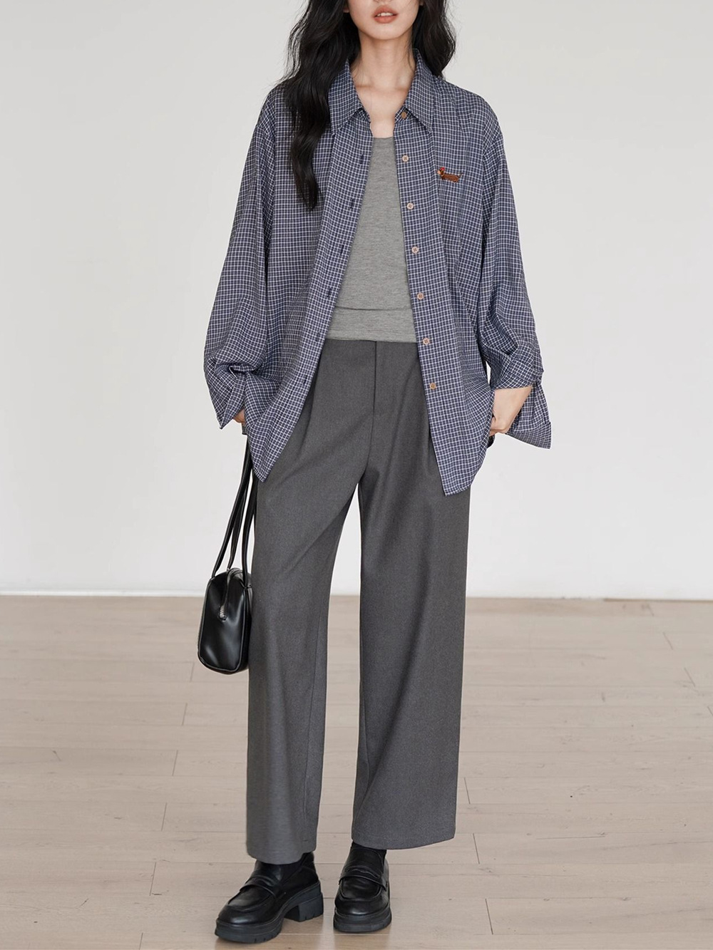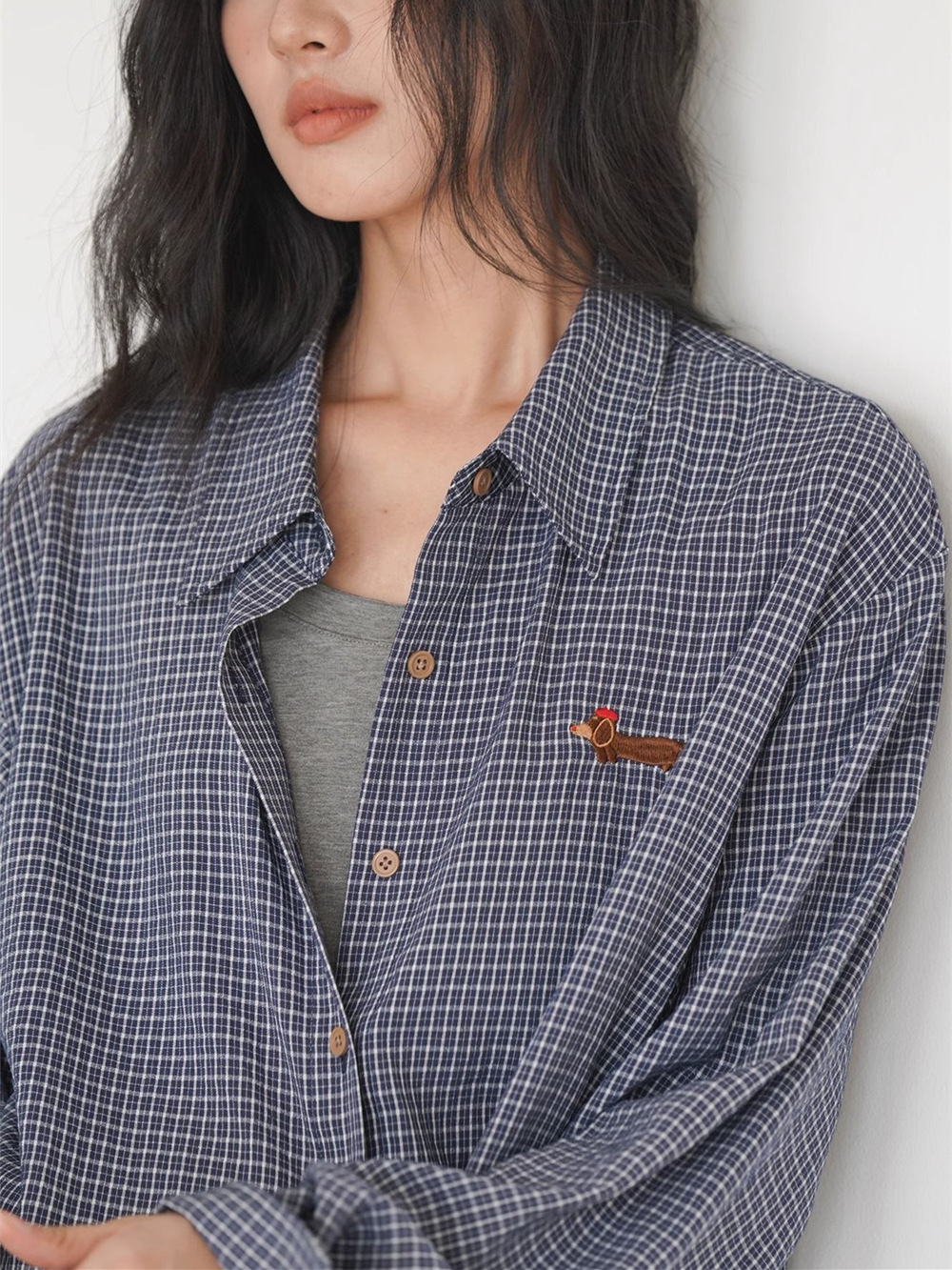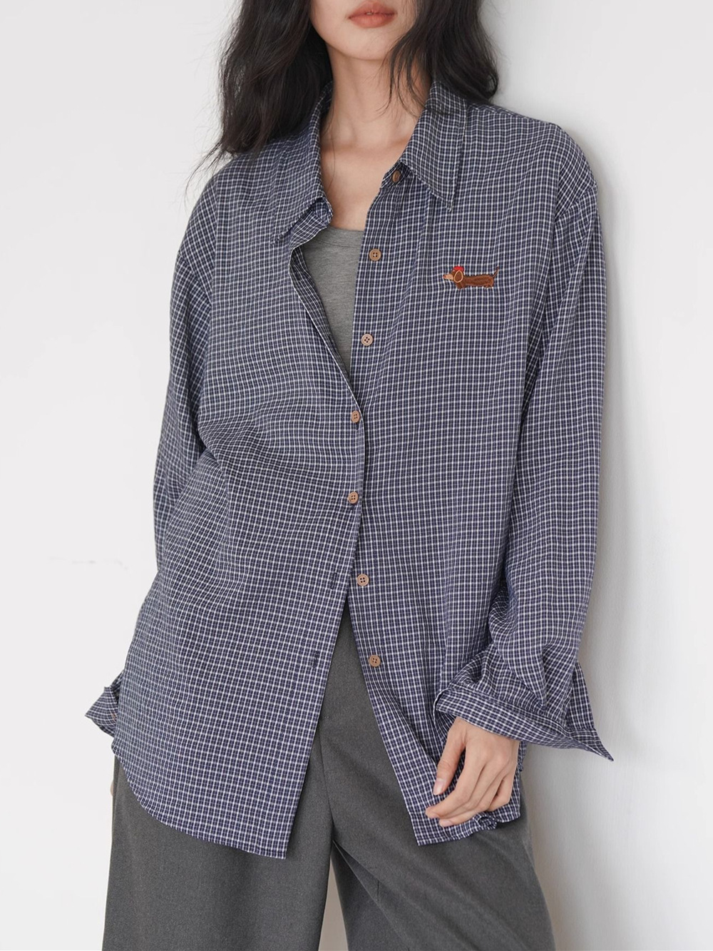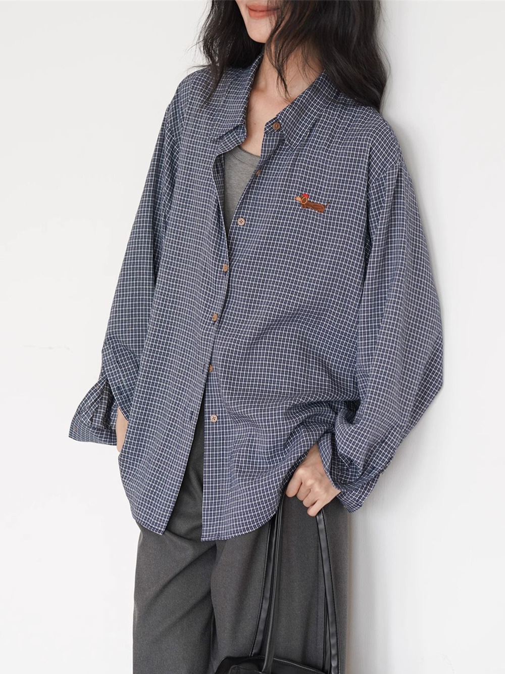 한국 스타일 느슨한 격자 무늬 셔츠 코트 여성 최고 초봄 및 가을 새로운 올매치 레트로 게으른 캐주얼 셔츠 긴 소매