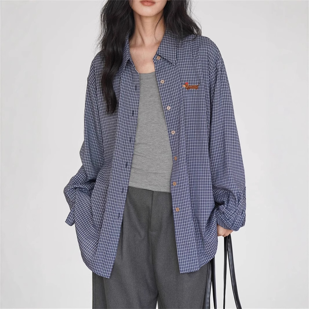 한국 스타일 느슨한 격자 무늬 셔츠 코트 여성 최고 초봄 및 가을 새로운 올매치 레트로 게으른 캐주얼 셔츠 긴 소매스토어 가기
