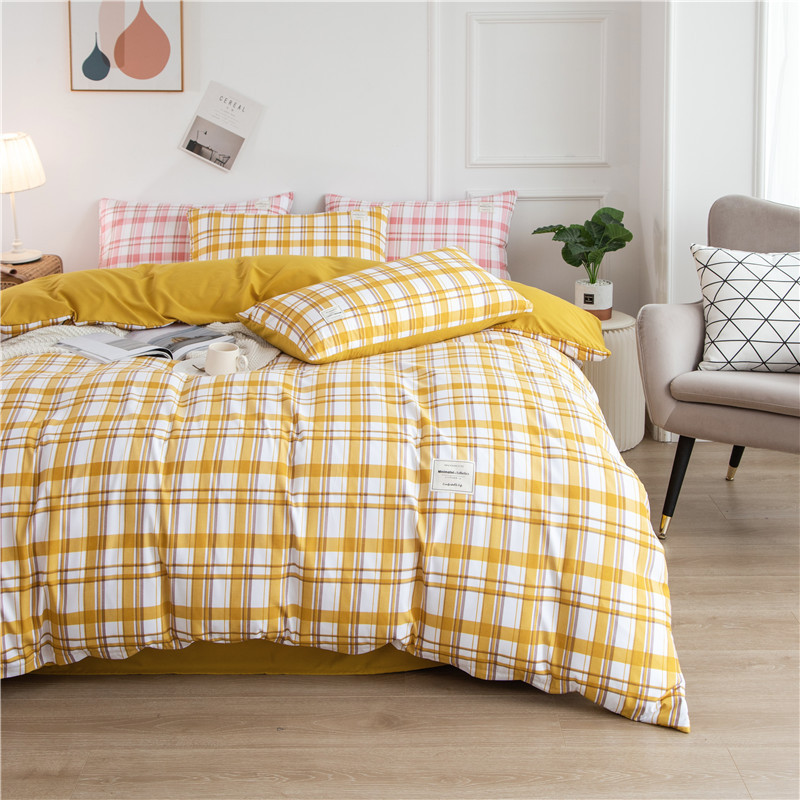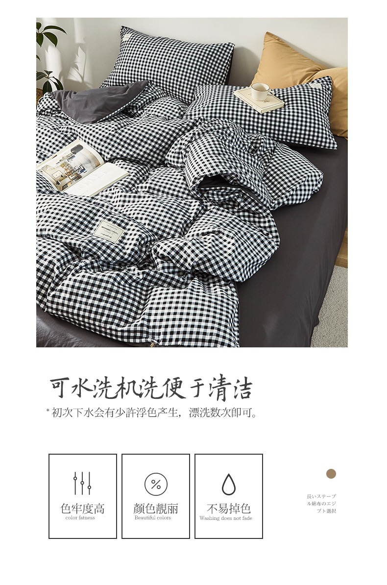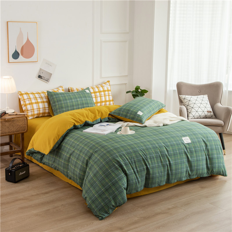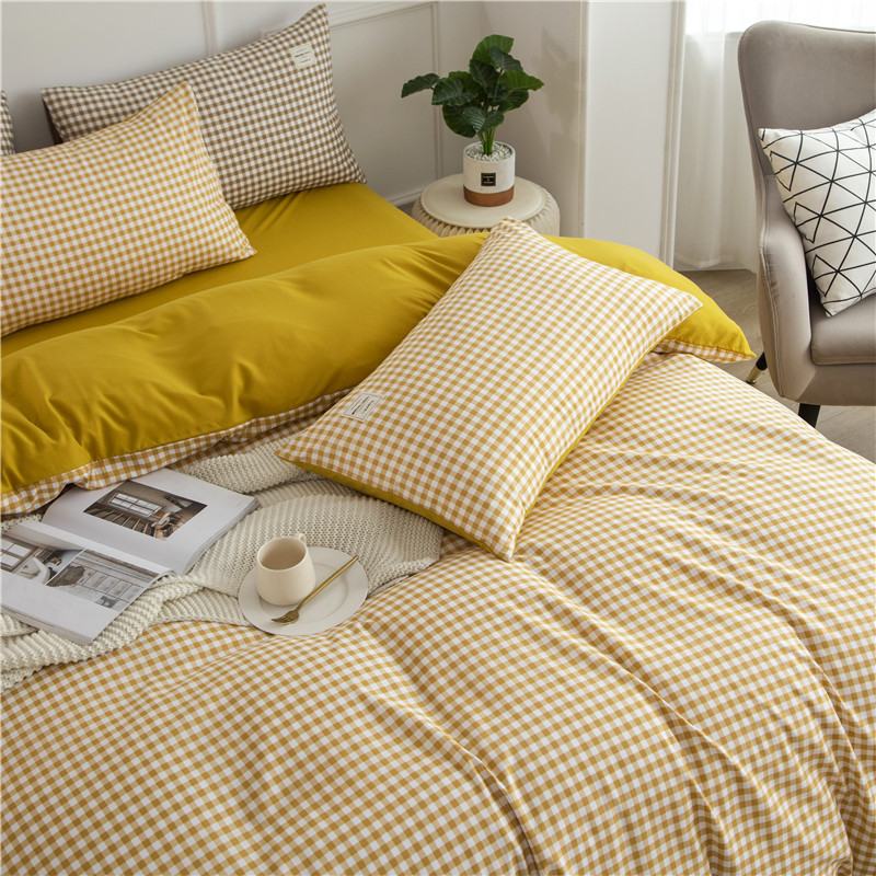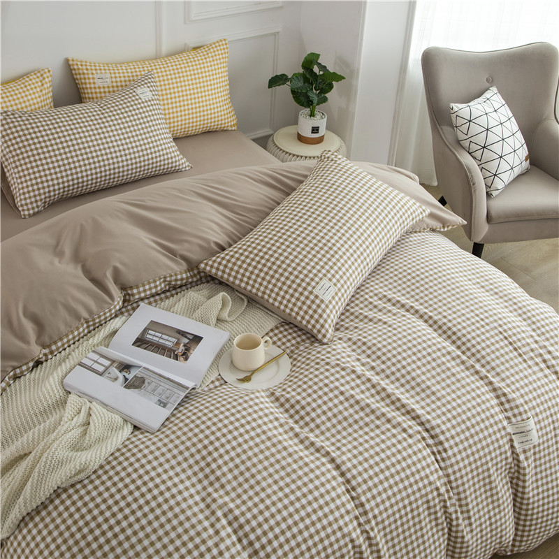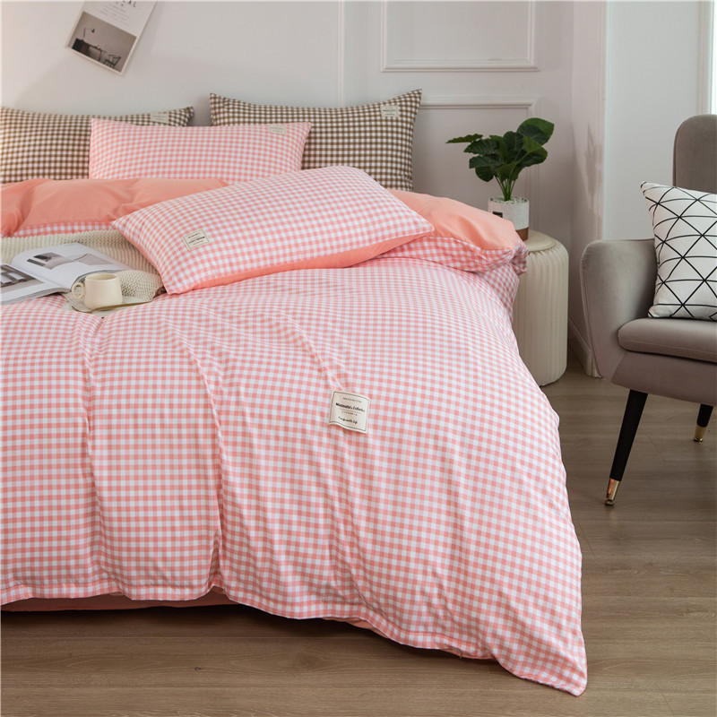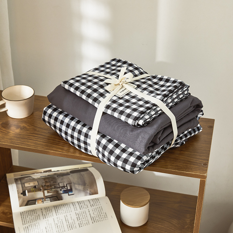 로카 면화 격자 무늬 작은 신선한 간단한 4 피스 침대 시트 모자 베갯잇 커버 단일 제품 3 피스 크로스 테두리 도매스토어 가기