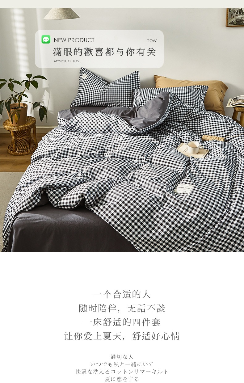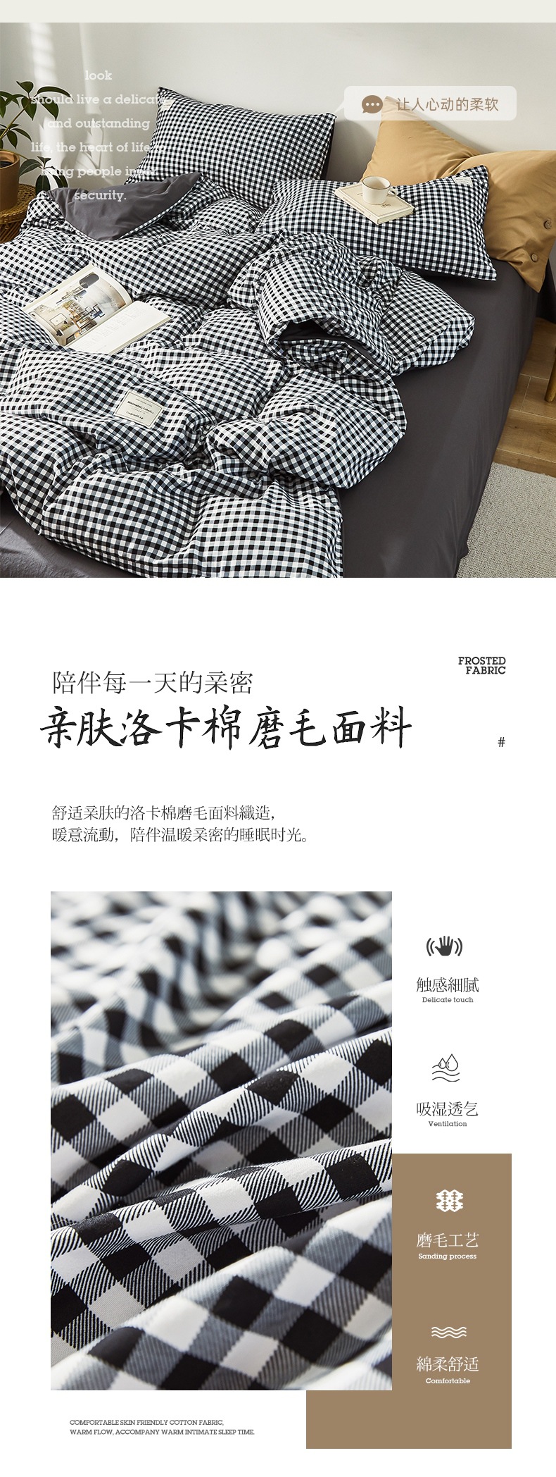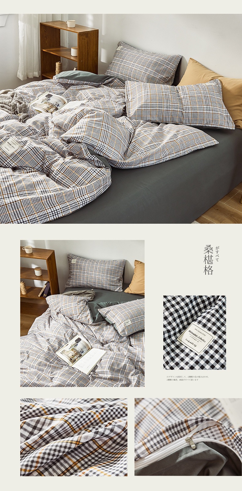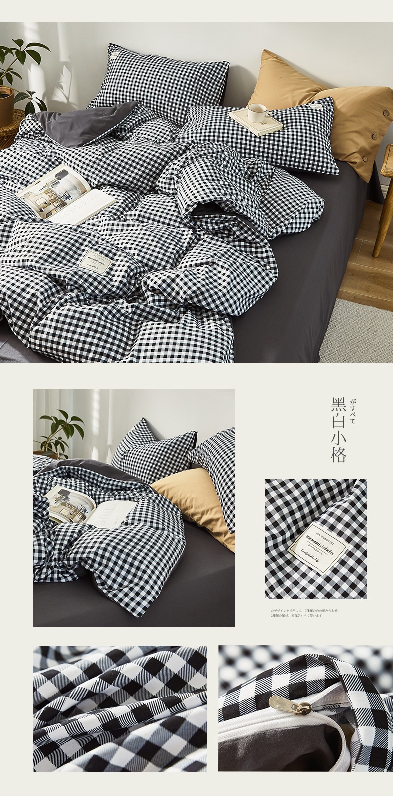로카 면화 격자 무늬 작은 신선한 간단한 4 피스 침대 시트 모자 베갯잇 커버 단일 제품 3 피스 크로스 테두리 도매스토어 가기