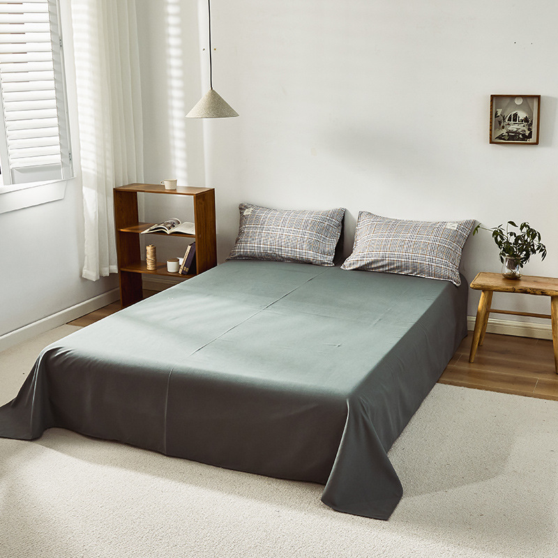 로카 면화 격자 무늬 작은 신선한 간단한 4 피스 침대 시트 모자 베갯잇 커버 단일 제품 3 피스 크로스 테두리 도매