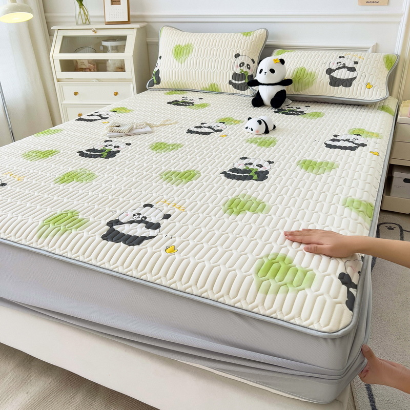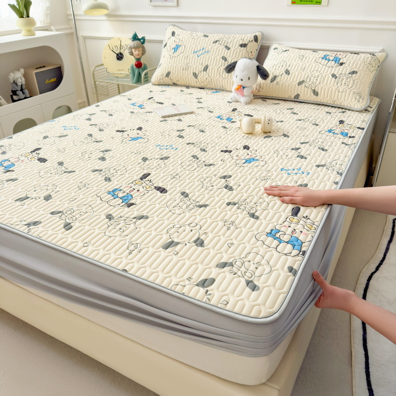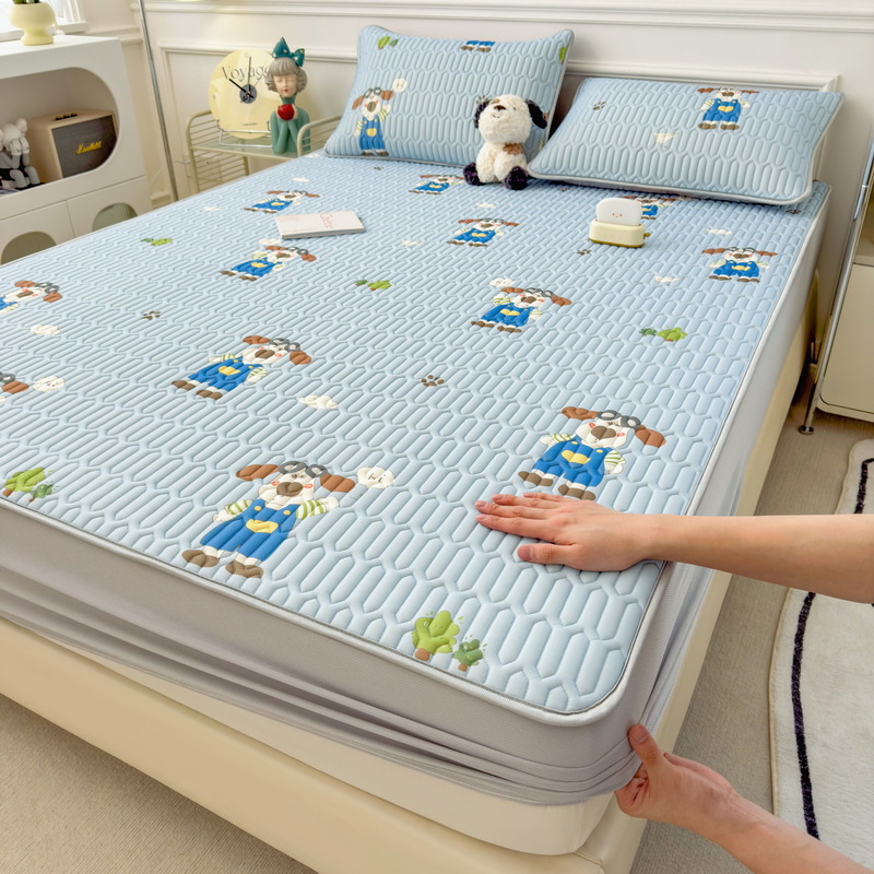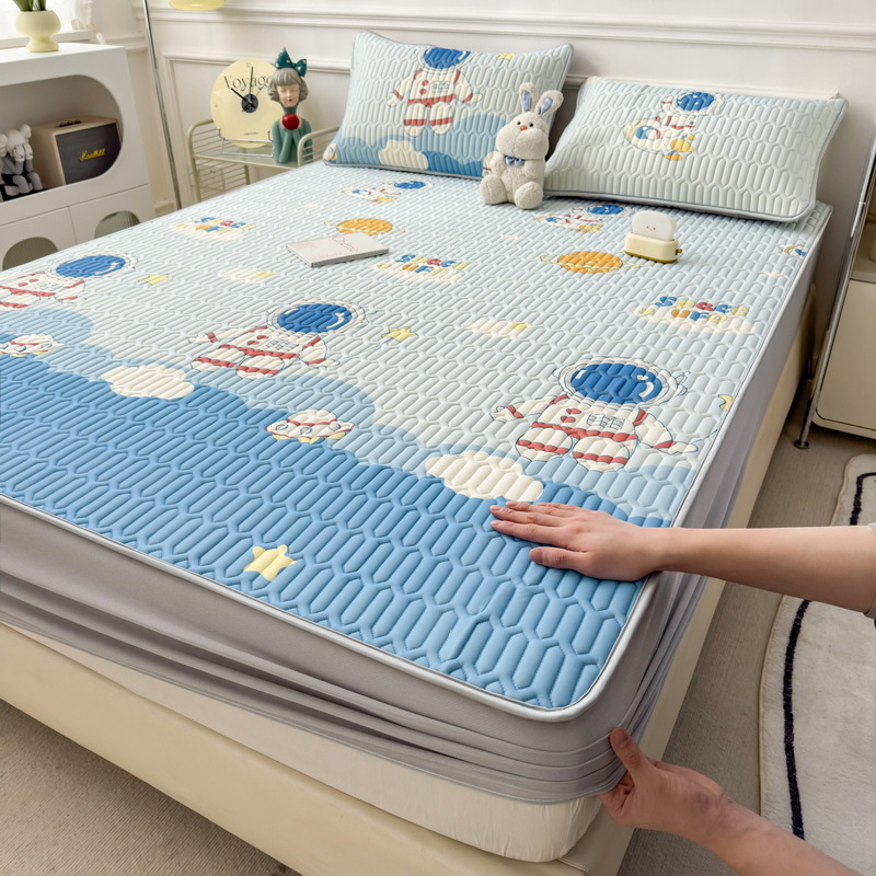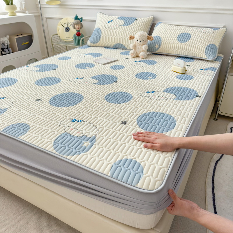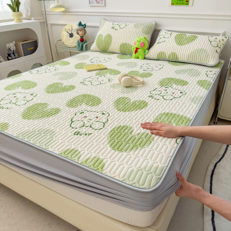 여름 아이스 실크 매트 라텍스 매트 만화 제인 180x200 침대 모자 매트 3 피스 세트 베개 케이스 멋진 실크 침대보스토어 가기