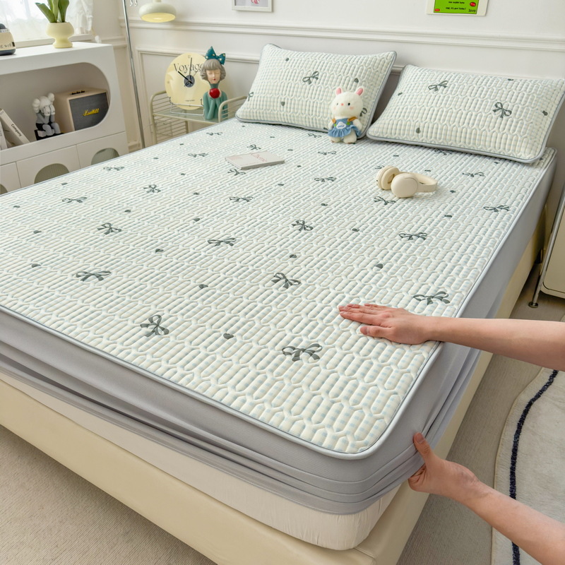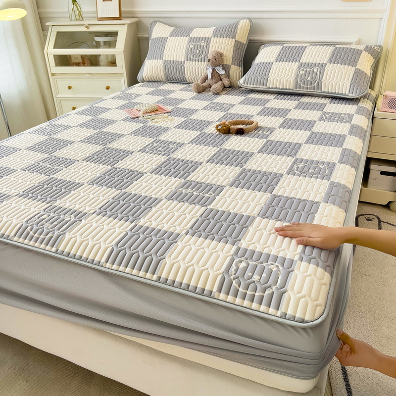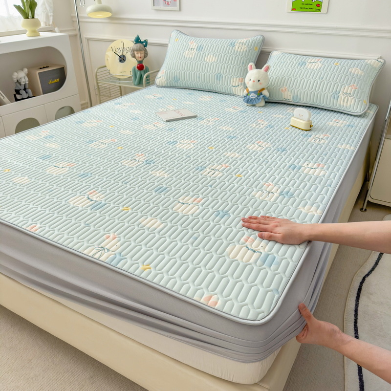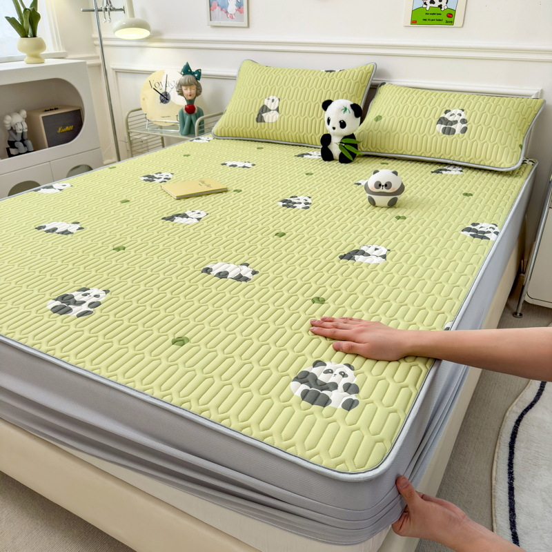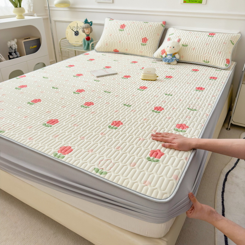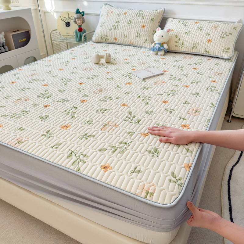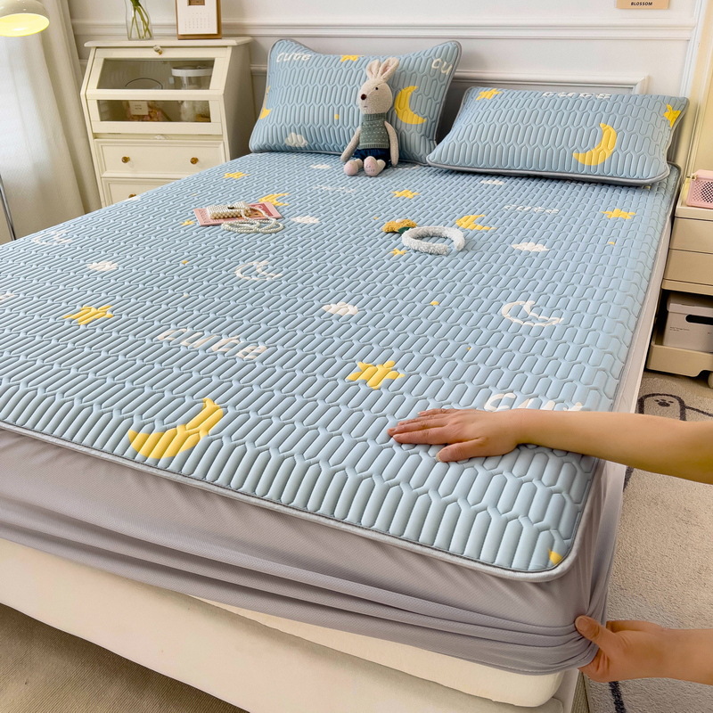 여름 아이스 실크 매트 라텍스 매트 만화 제인 180x200 침대 모자 매트 3 피스 세트 베개 케이스 멋진 실크 침대보스토어 가기