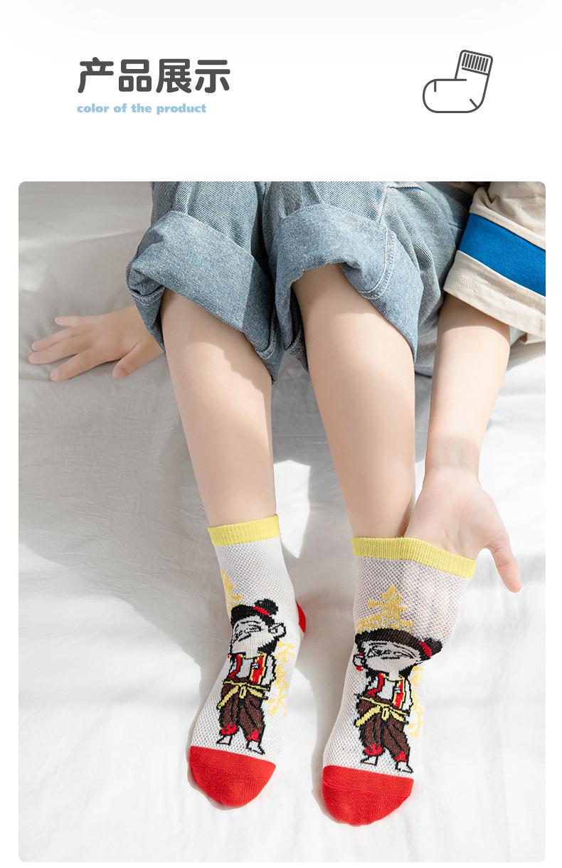 Nezha 어린이 양말 여름 얇은 면 메쉬 양말 소녀 만화 ao c 소년 양말 봄과 여름 보트 양말