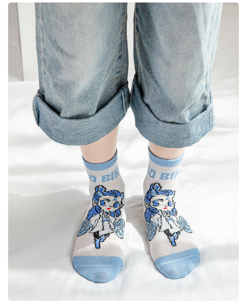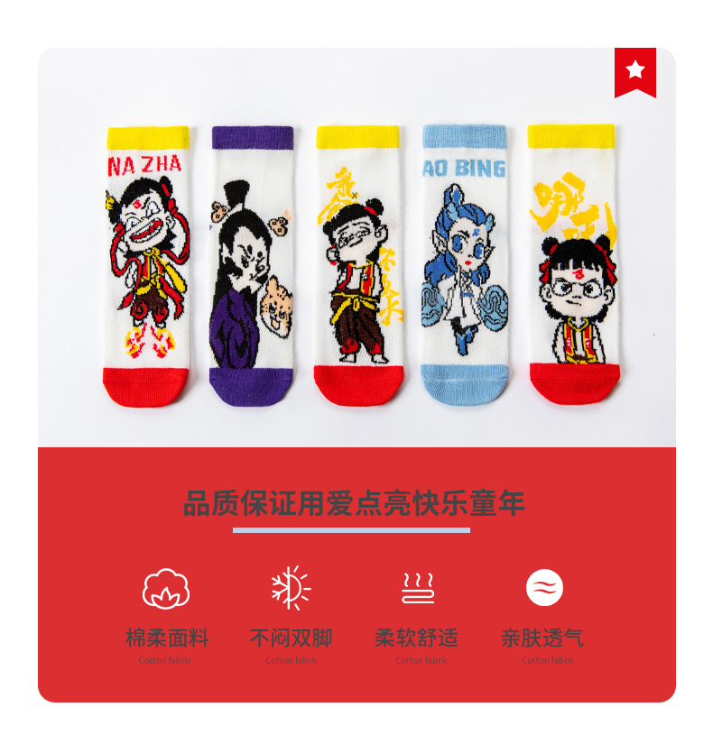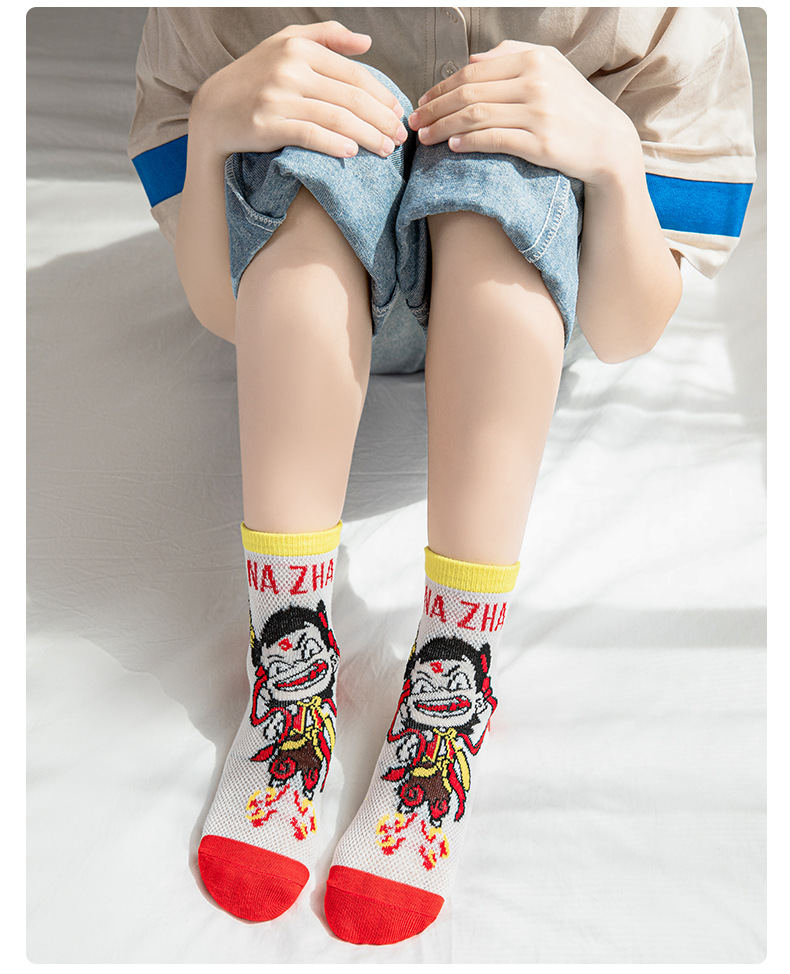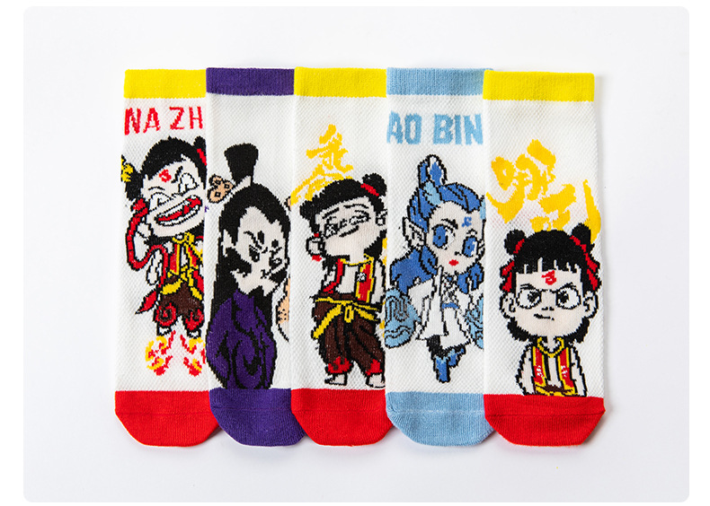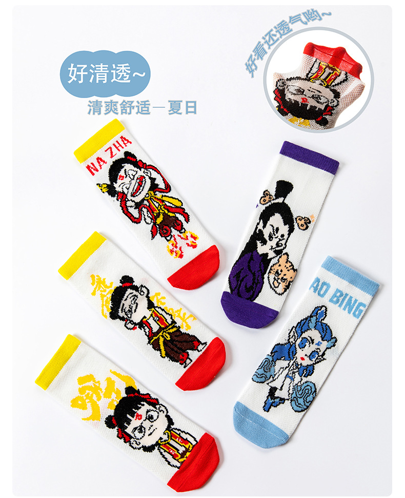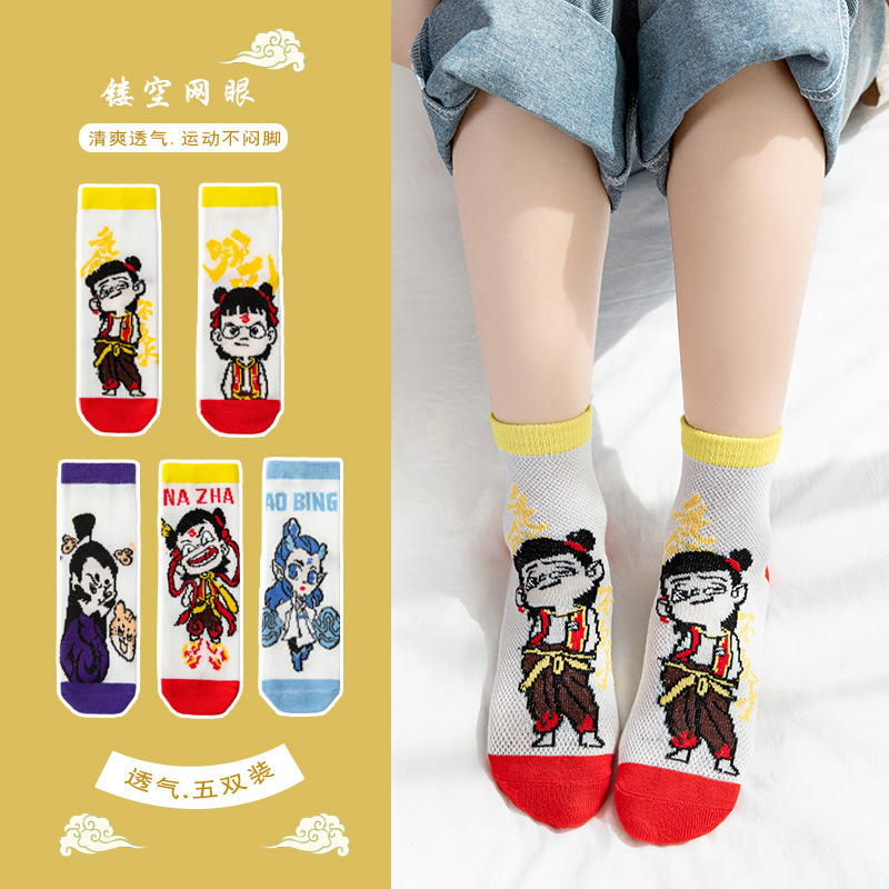 Nezha 어린이 양말 여름 얇은 면 메쉬 양말 소녀 만화 ao c 소년 양말 봄과 여름 보트 양말스토어 가기