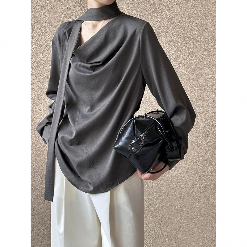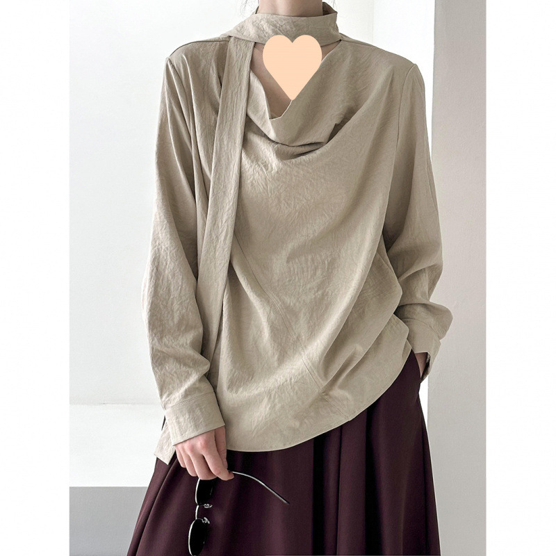 스윙 칼라 긴 소매 라이닝 여성의 2025 가을 한국 스타일 느슨한 올 매치 셔츠 패션 탑으로 디자인 센스 교수형 목