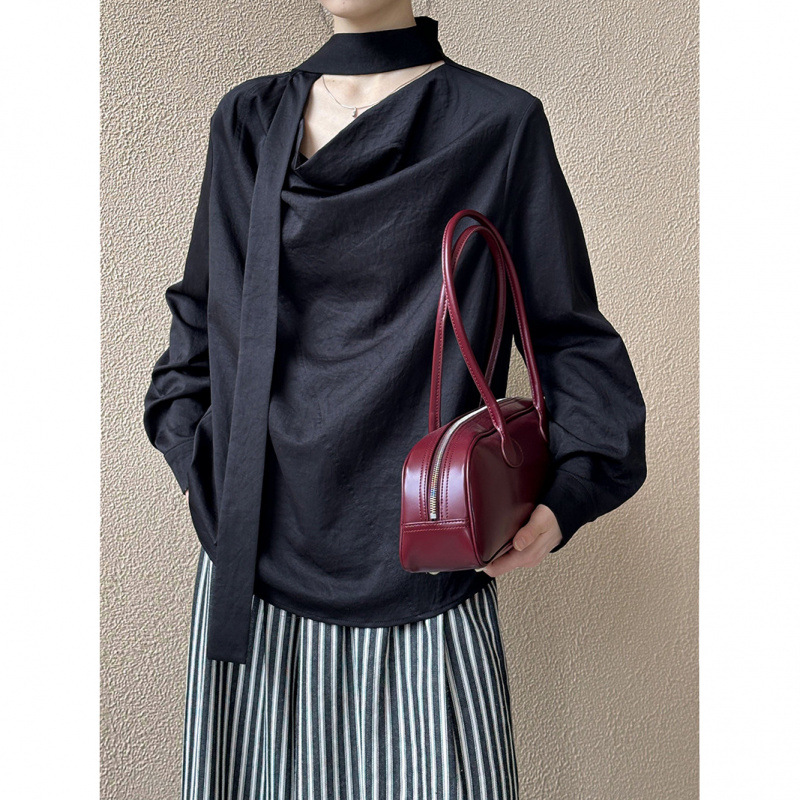 스윙 칼라 긴 소매 라이닝 여성의 2025 가을 한국 스타일 느슨한 올 매치 셔츠 패션 탑으로 디자인 센스 교수형 목스토어 가기