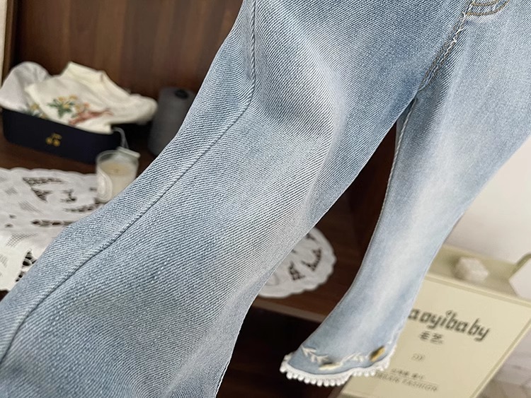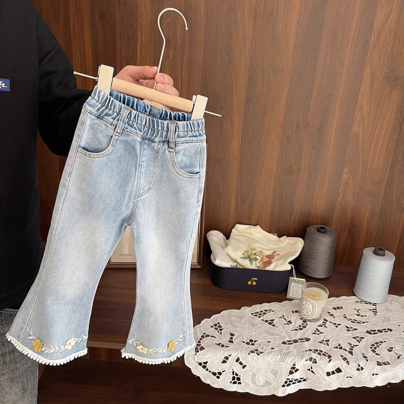 소녀 청바지 봄 2025 새로운 스타일 어린이 바지 아기 봄과 가을 자수 바지스토어 가기