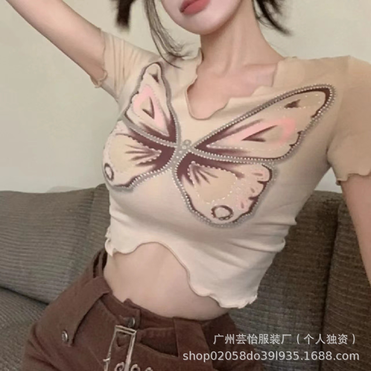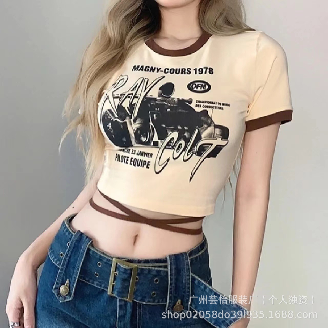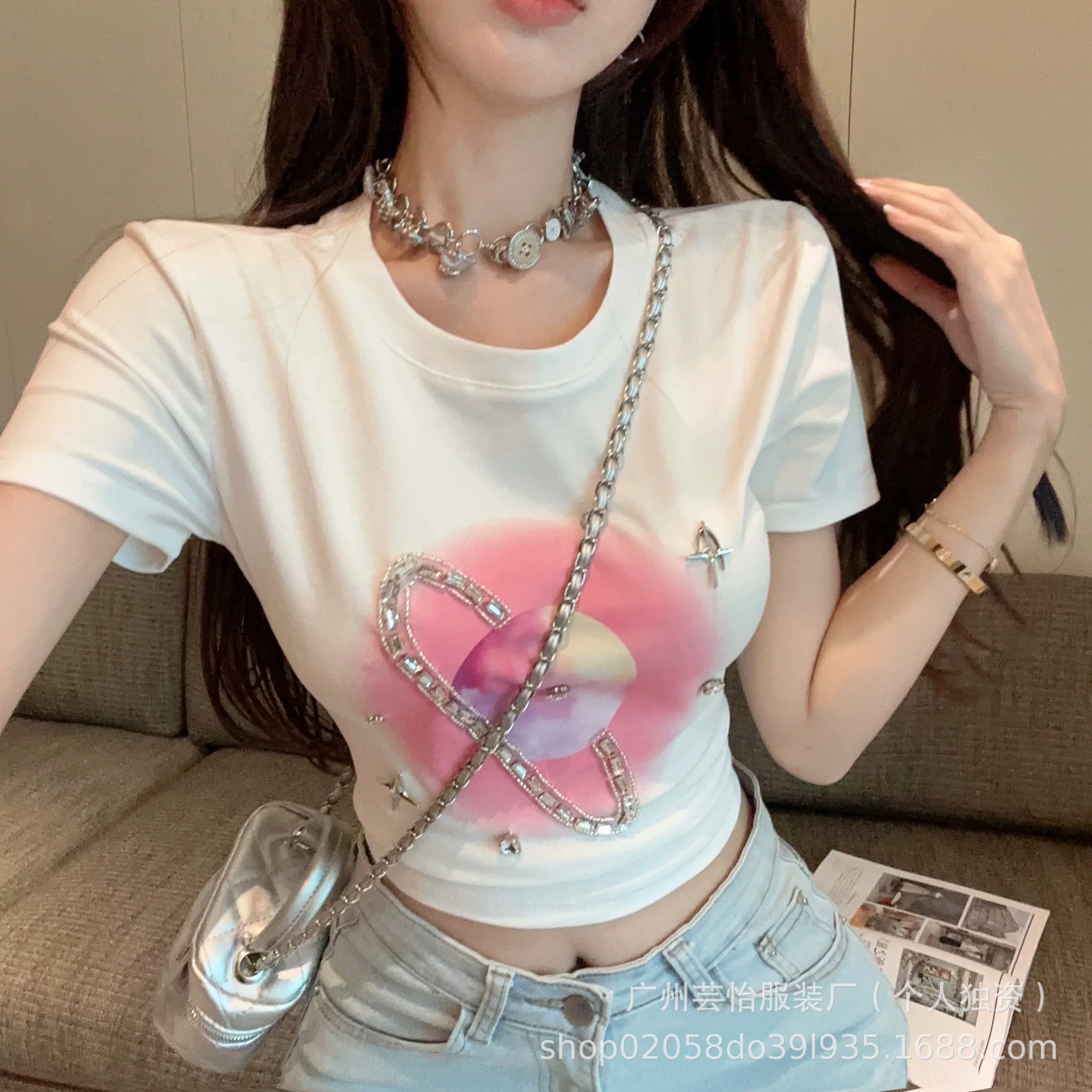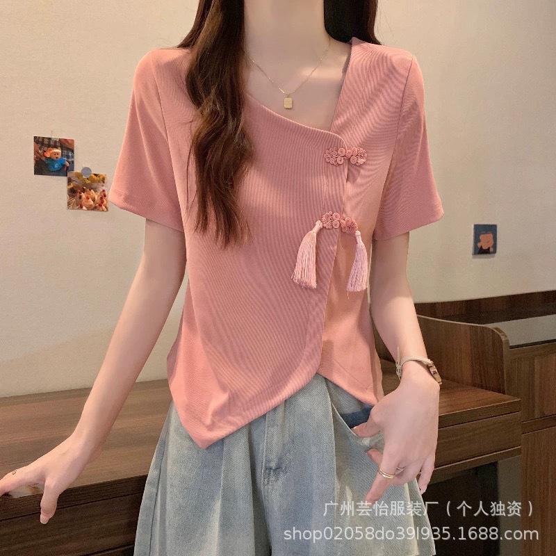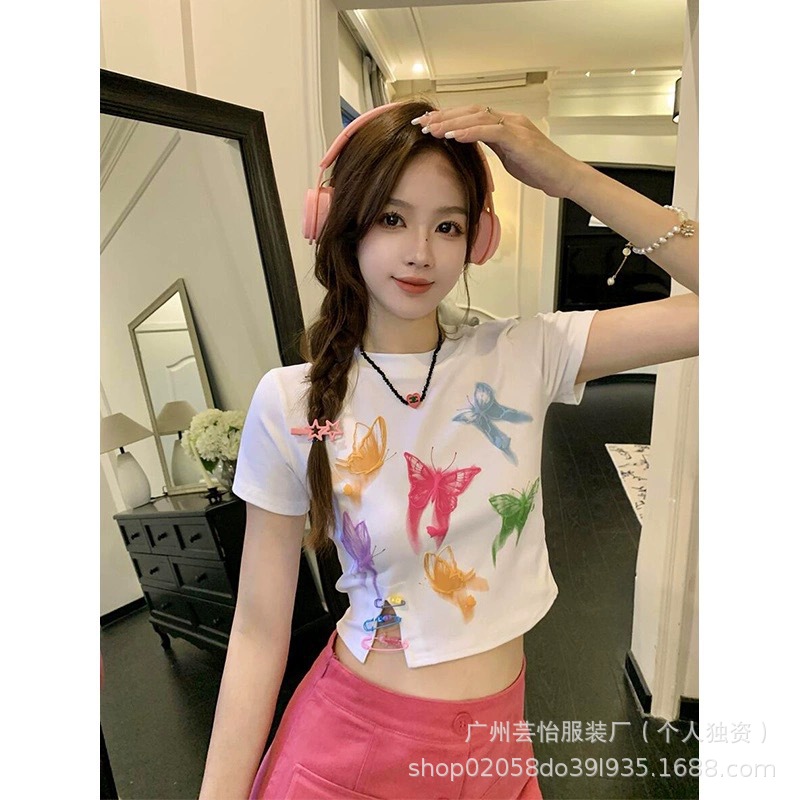 25 여름 새로운 순수 어깨 반팔 티셔츠 여성용 내베이스 셔츠 스파이스 걸스 T 슬림 핏 짧은 작은 디자인 탑