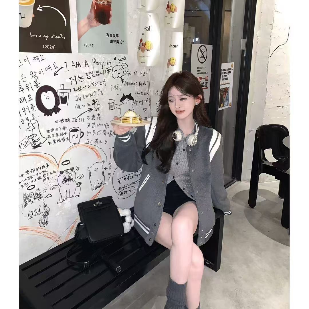 Wk2025 봄 커플 올매치 대학스타일 야구 재킷 느슨한 재킷 011 야구 세트 한국 야구 세트스토어 가기
