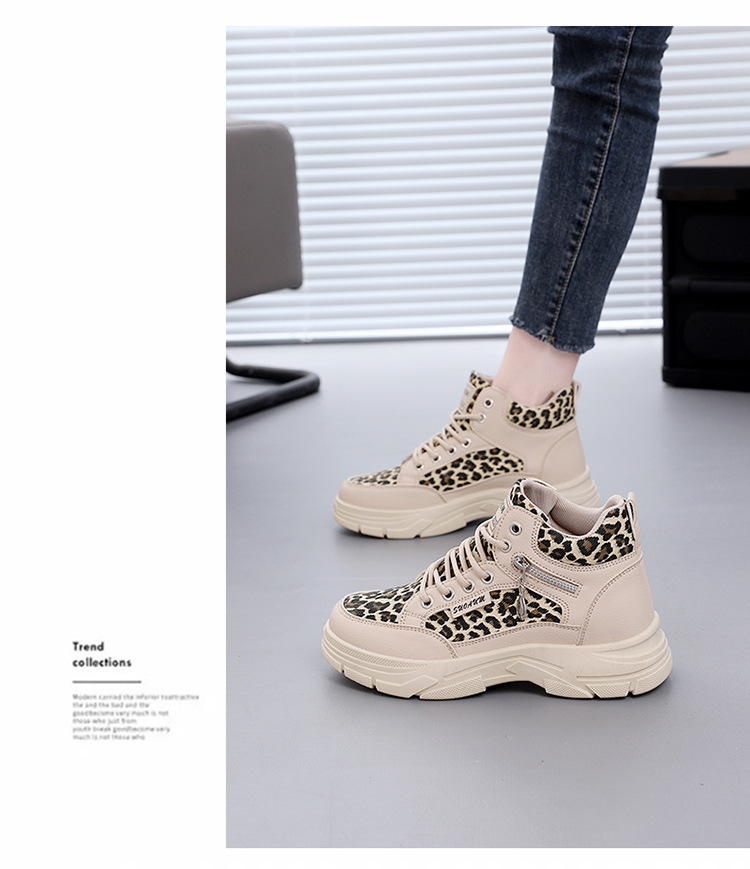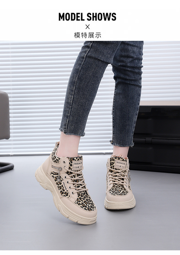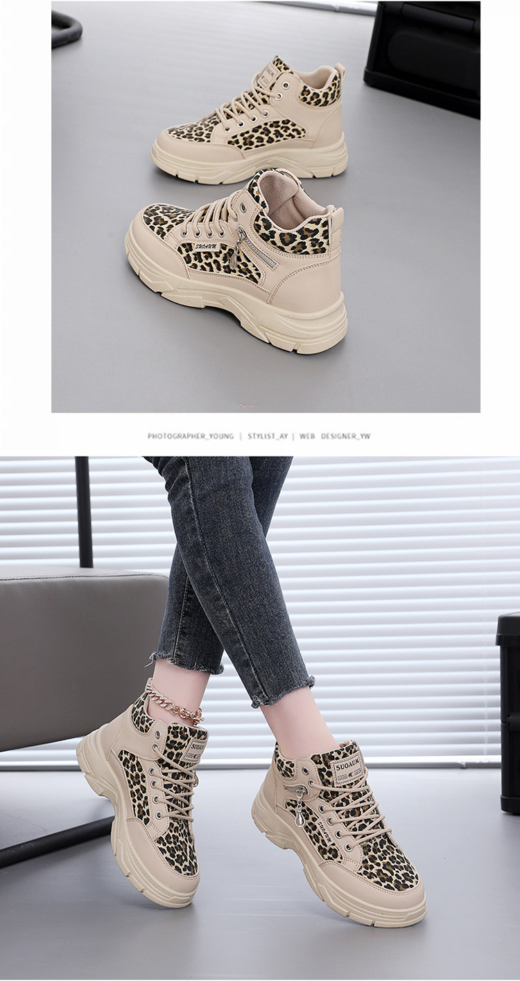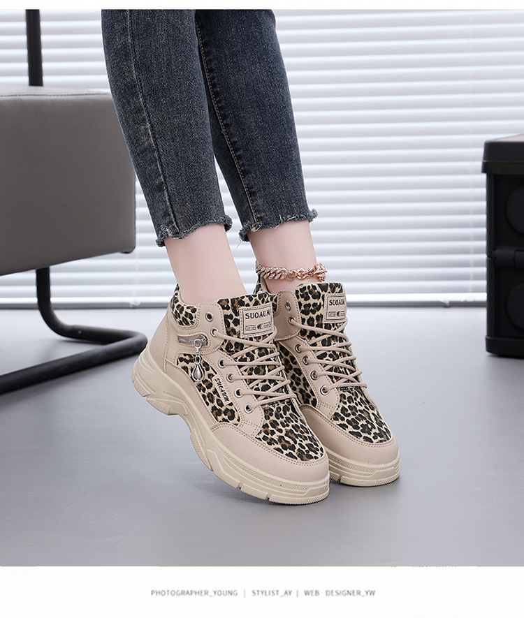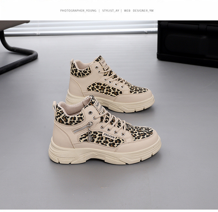 봄과 가을 트렌디 한 레오파드 무늬 두꺼운 바닥 캐주얼 스케이트 보드 신발 여성의 2025 새로운 도착 유행 올매치 야외 트렌디 신발 여성 Z010스토어 가기