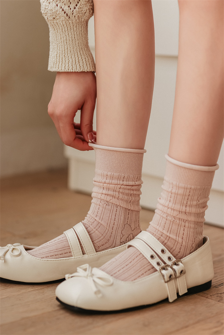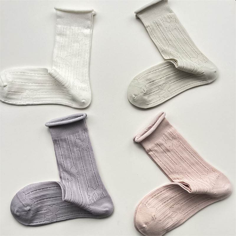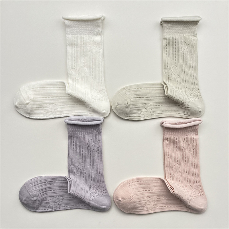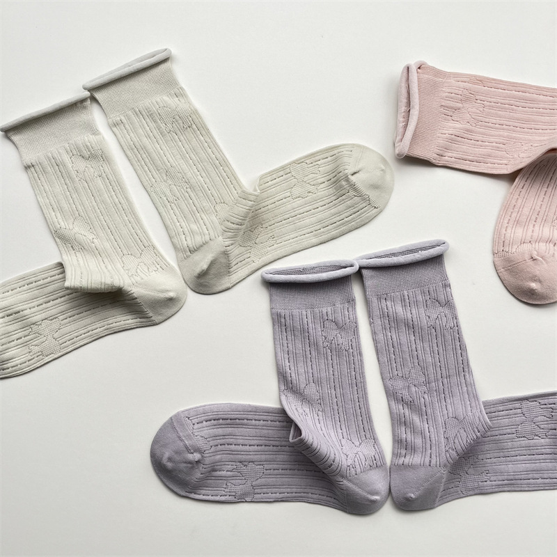 봄과 여름 얇은 통기성 컬 메쉬 양말 어린이 일본식 귀여운 활 양말 뼈없는 면 스택 양말