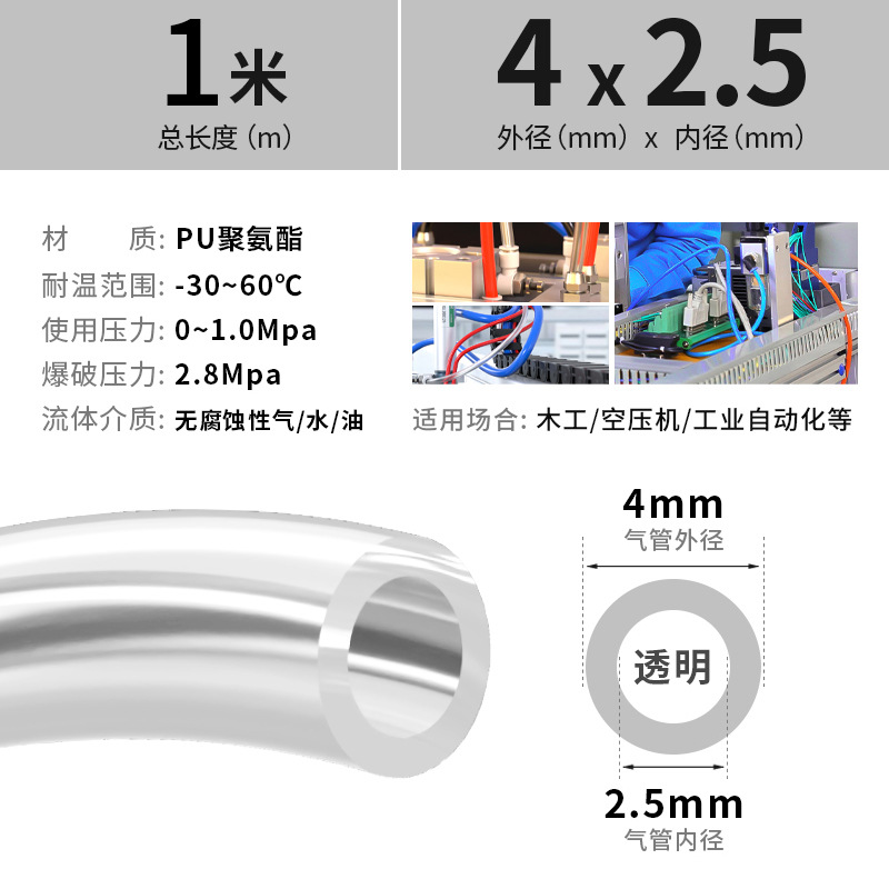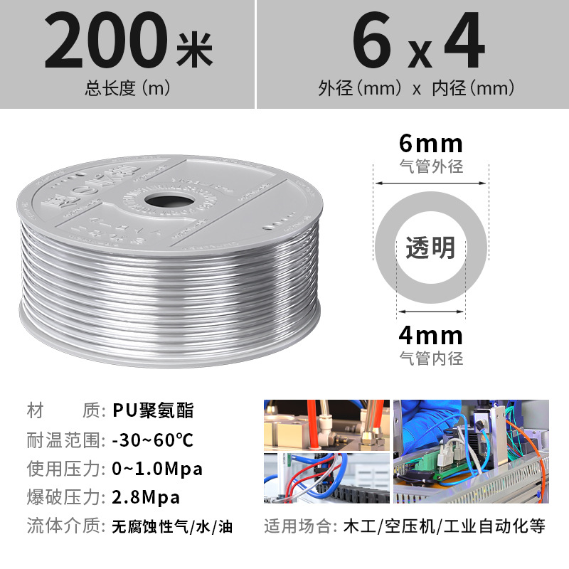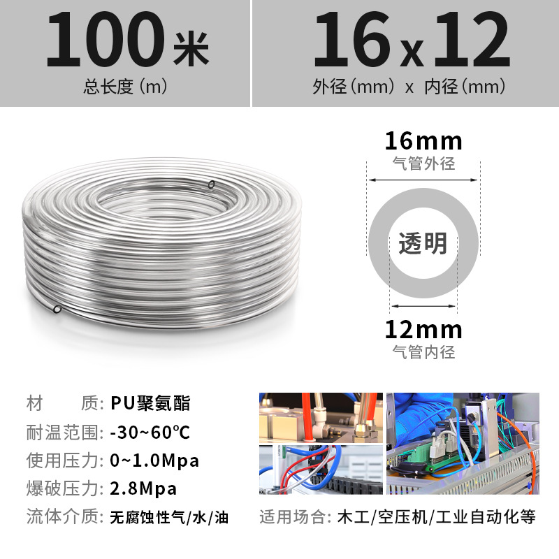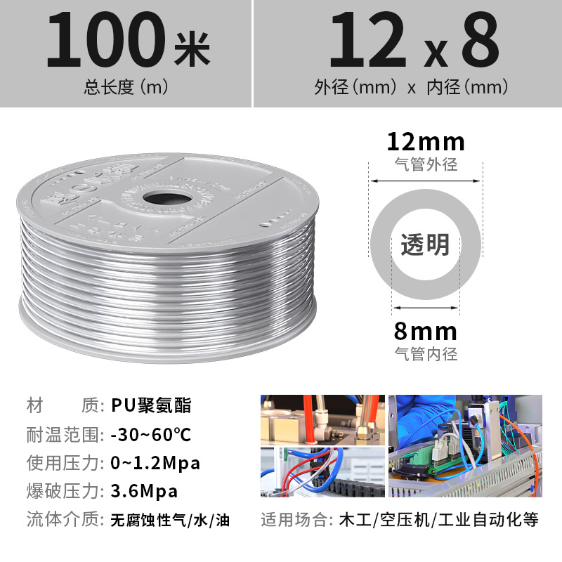 PU 공기 파이프 호스 공기 압축기 공기 펌프 공압 고압 투명 공기 파이프 고온 폭발 방지 6/8/10/12mm스토어 가기