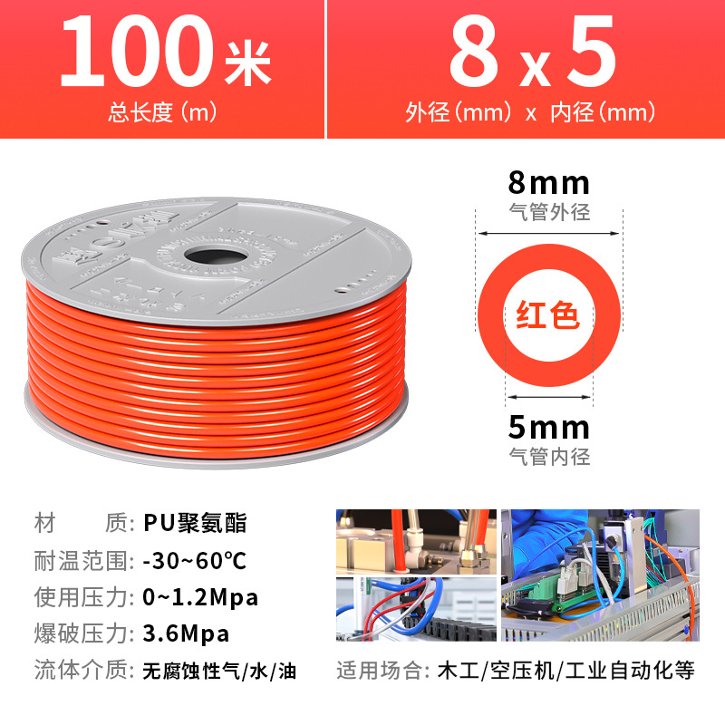 • 빨간색 PU 3층 방폭 원사 클램프 튜브 8*5 10m [내압 15kg] (퀵 플러그 커넥터와 함께 사용하지 마십시오. 폭발성 튜브)