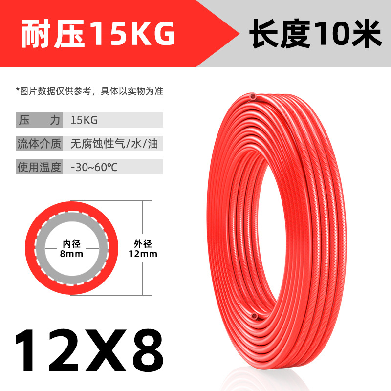 • 빨간색 PU 3층 방폭 원사 클램프 튜브 12*8 10m [내압 15kg] (퀵 커넥터, 방폭 튜브와 함께 사용하지 마십시오)