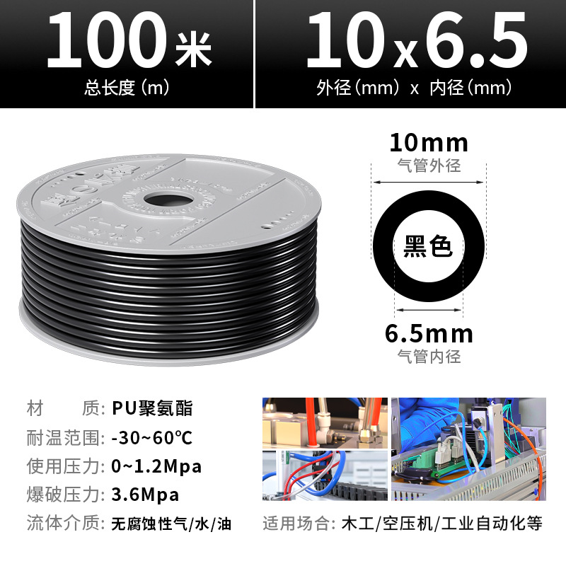 • [파이프 커터 무료] PU10*6.5 검정색 독일 수입 소재 100m