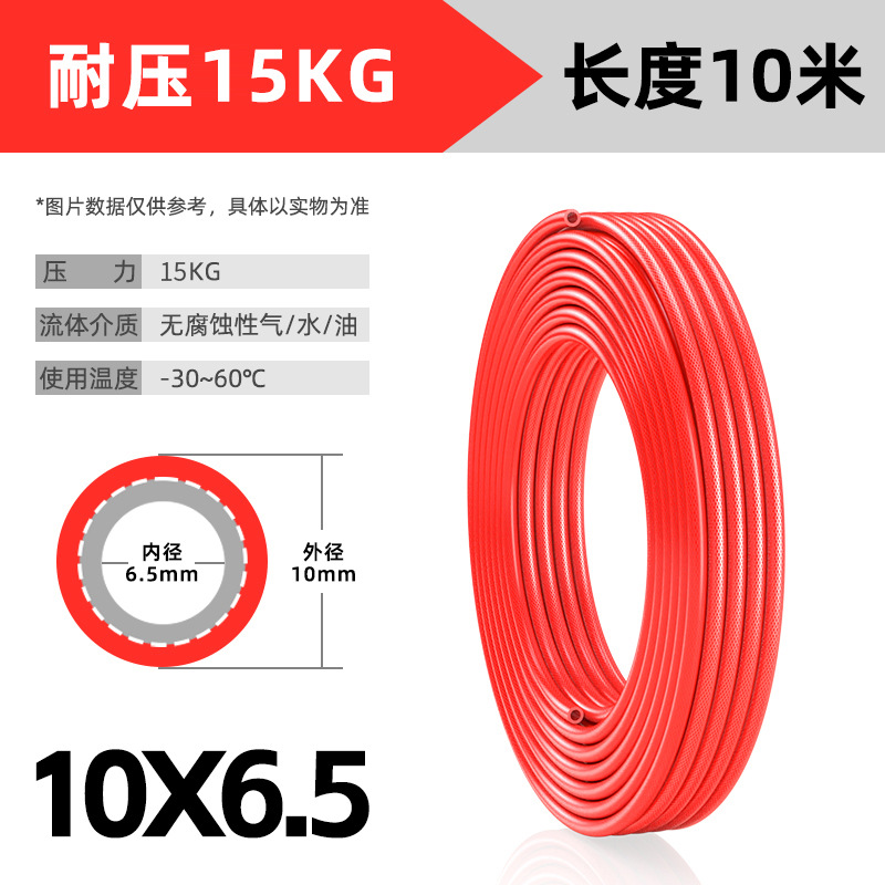 • 빨간색 PU 3층 방폭 원사 클램프 튜브 10*6.5 10m [내압 15kg] (퀵 커넥터, 방폭 튜브와 함께 사용하지 마십시오)
