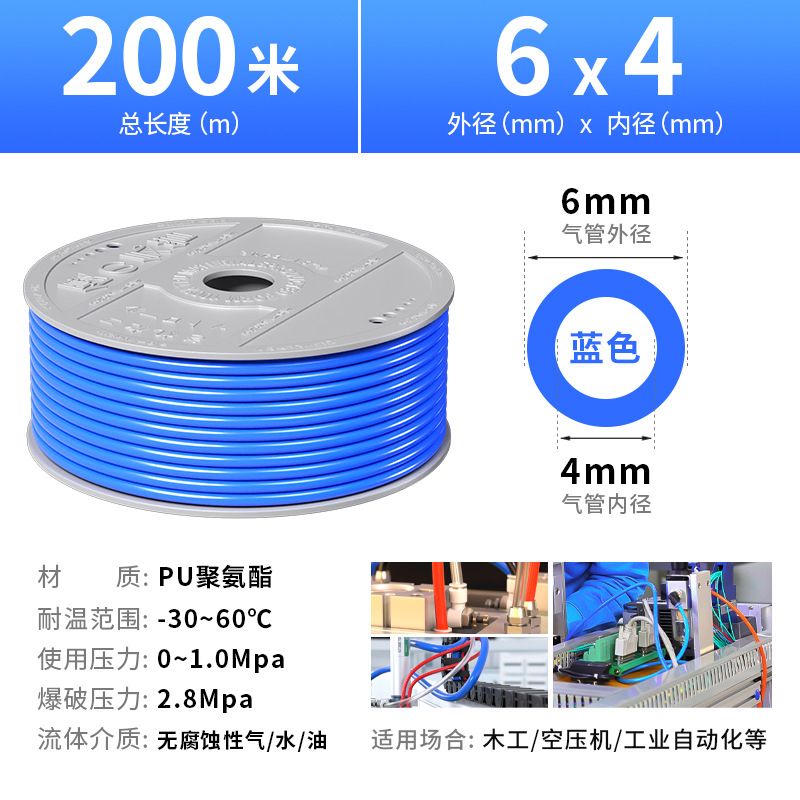 • [파이프 커터 무료] PU6*4 블루 수입 독일 소재 200m