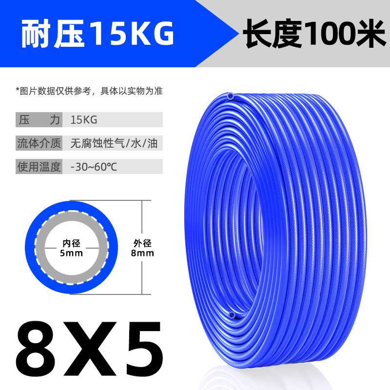 • 원사 클램프 튜브 8x5mm- 100m 파란색-내압 15kg(퀵 플러그 커넥터, 폭발성 튜브와 함께 사용하지 마십시오)