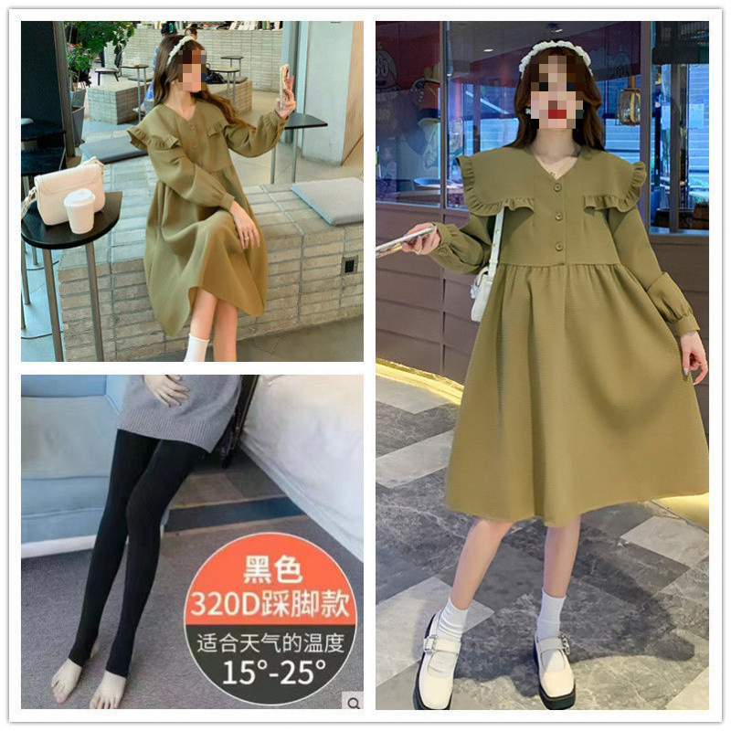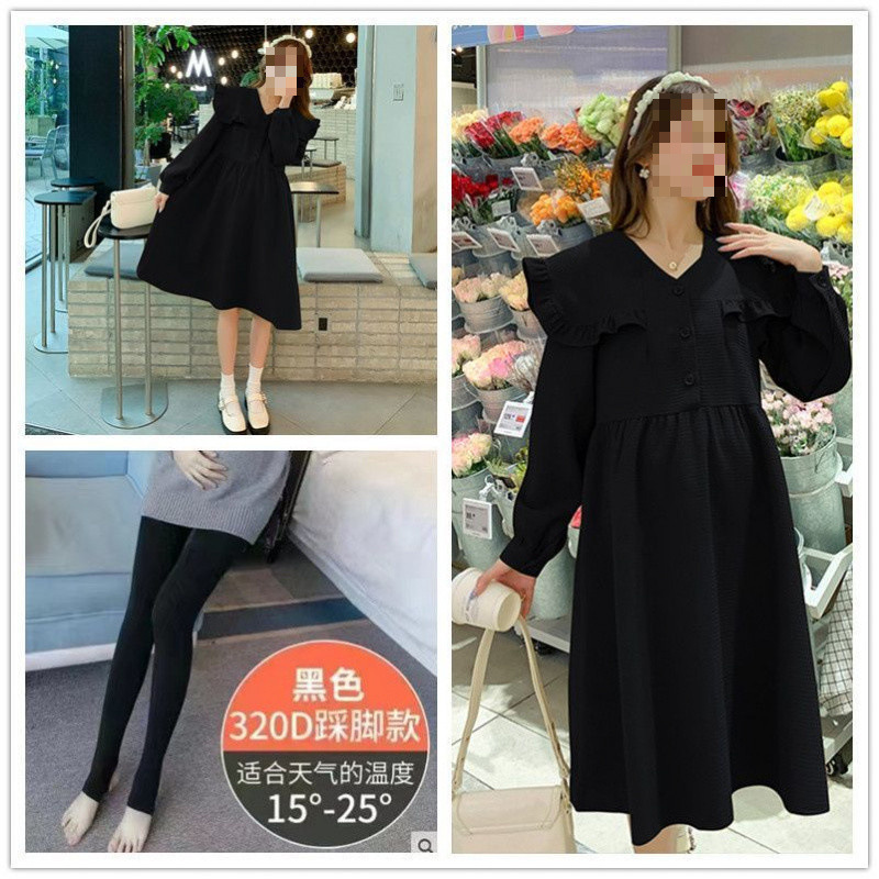 임산부 의류 2025 봄 새로운 출산 의류 긴 외국 스타일 조수 엄마 와플 임산부 원피스스토어 가기