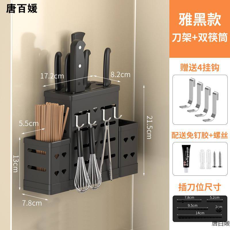 • 고귀한 이중 젓가락 꽂이 + 칼(검은색) 후크 포함, 벽걸이 버전
