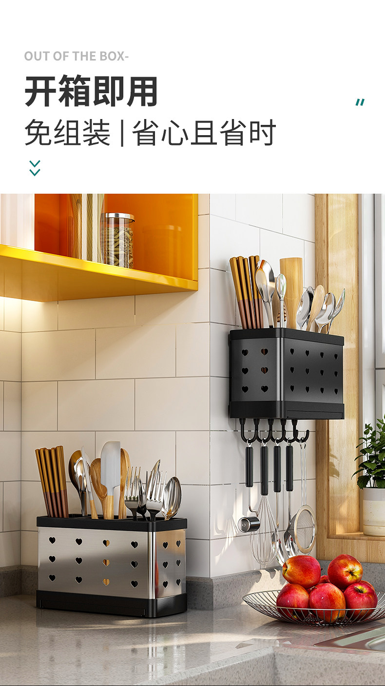 주방 젓가락 바닥 보관 랙 스테인레스 스틸 식기 숟가락 젓가락 홀더 공급 배수 랙 벽 장착 펀치 프리스토어 가기