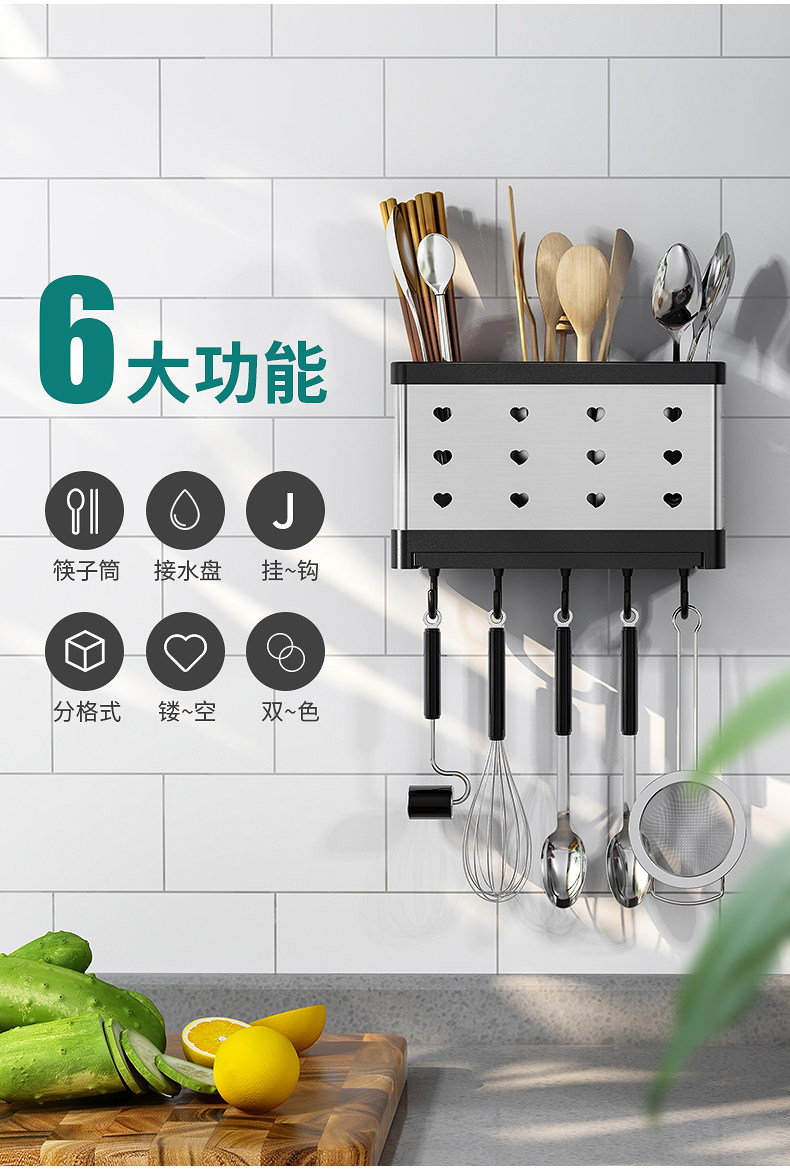 주방 젓가락 바닥 보관 랙 스테인레스 스틸 식기 숟가락 젓가락 홀더 공급 배수 랙 벽 장착 펀치 프리